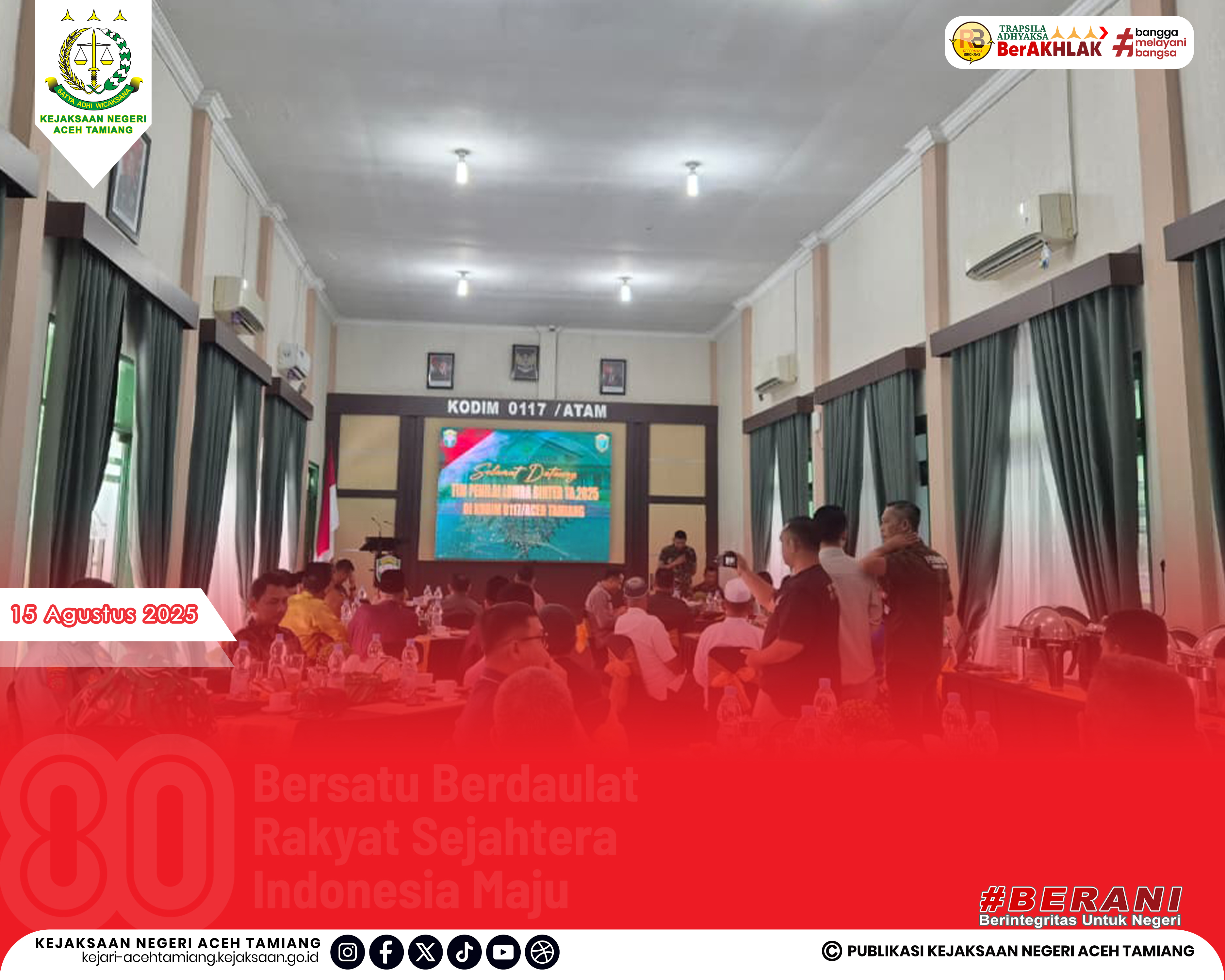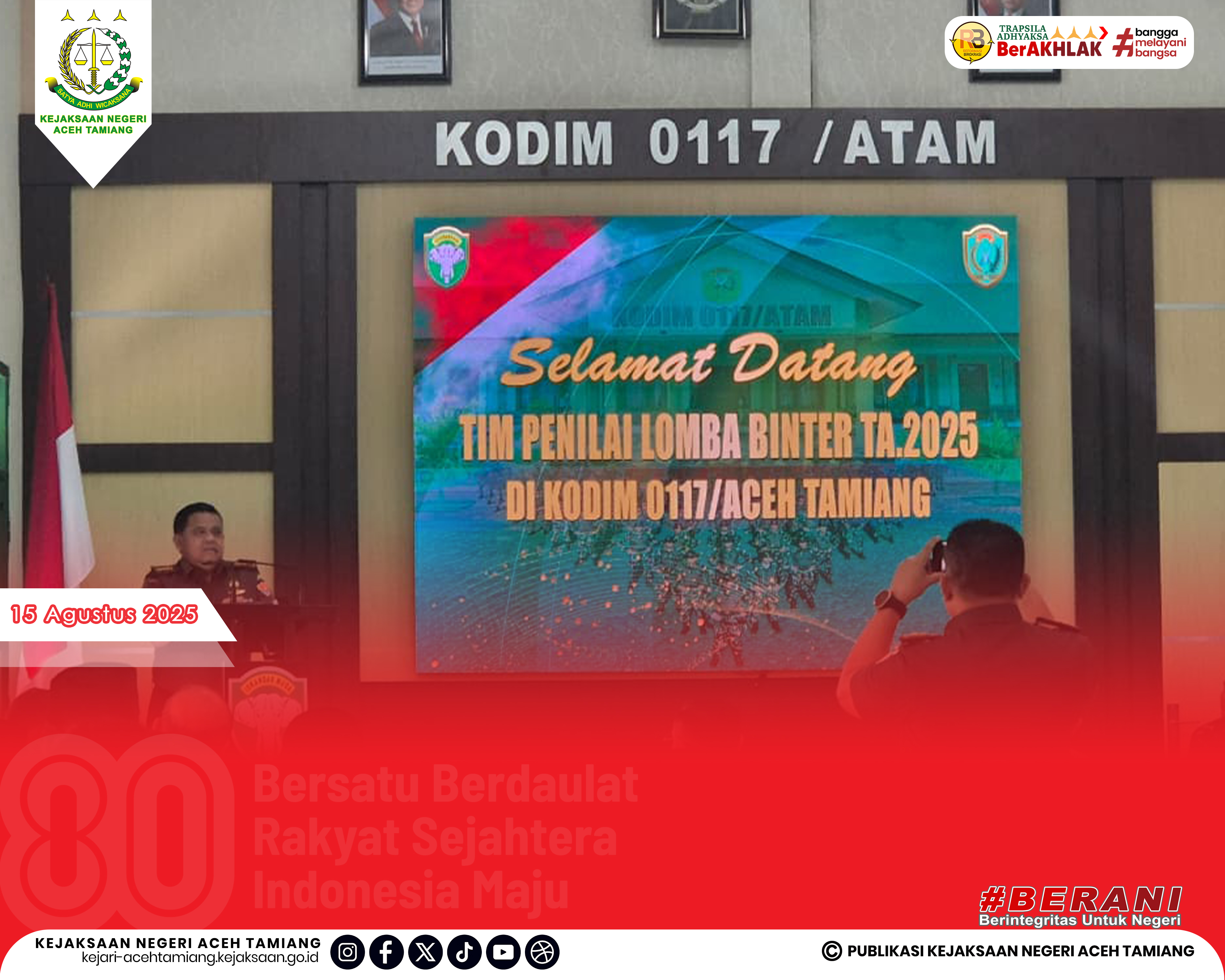 [Jumat, 15 Agustus 2025] Kepala Kejaksaan Negeri Aceh Tamiang Bapak Dr. Yudhi Syufriadi, S.H., M.H. Menghadiri Acara Penyambutan Kedatangan Tim Penilai Lomba Binter T.A 2025 di Kodim 0117/Aceh Tamiang.