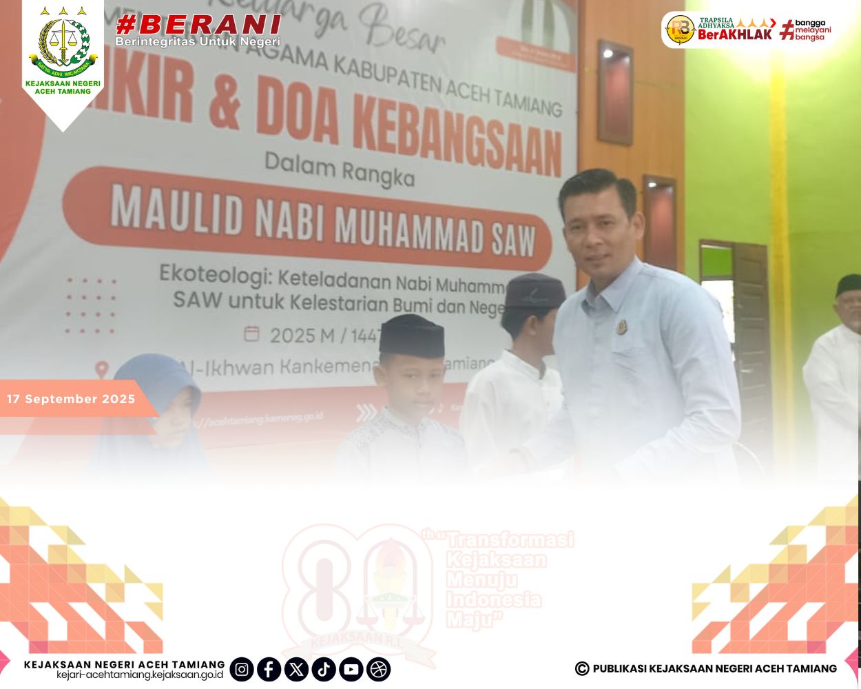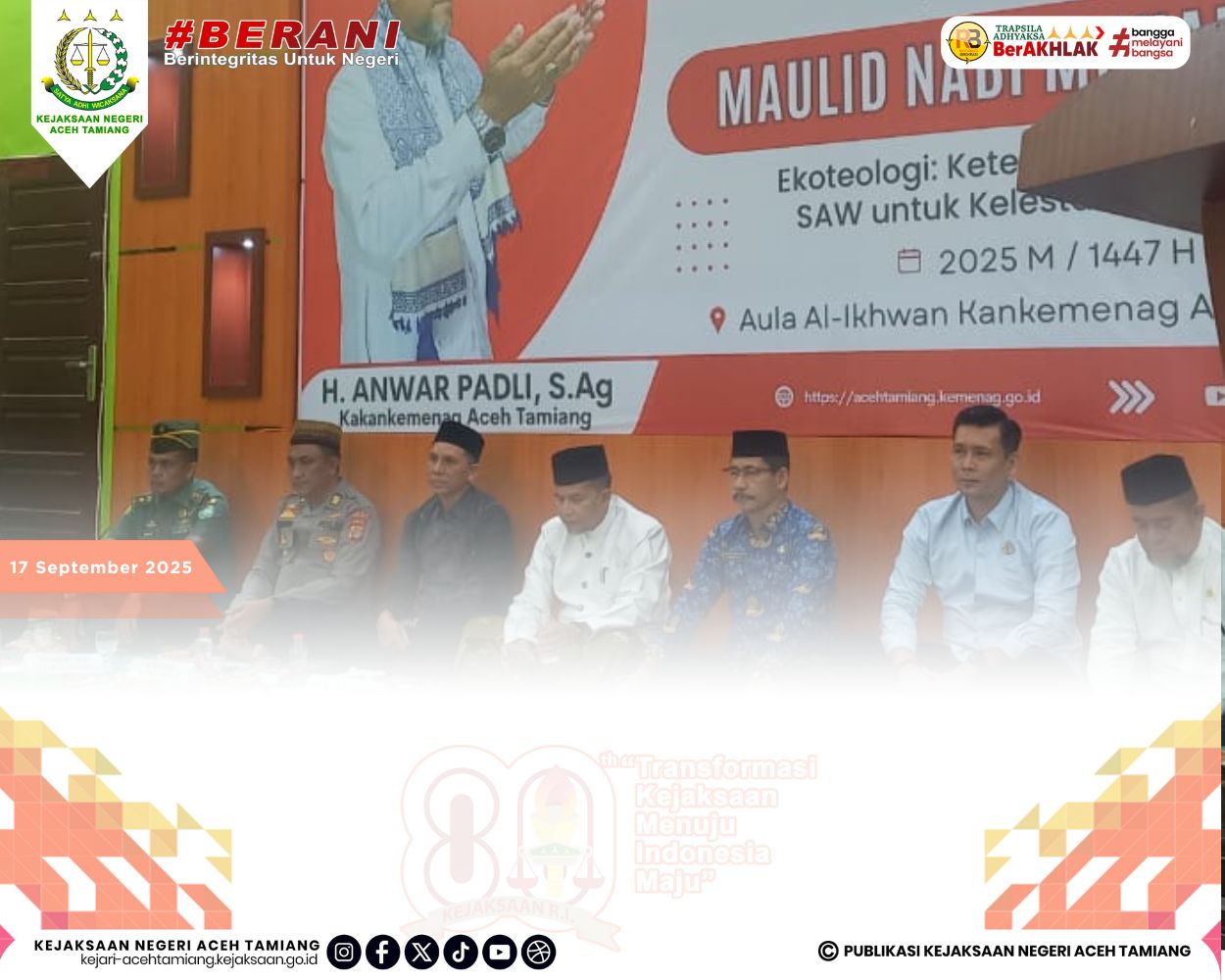 [Rabu, 17 September 2025] Kepala Sub Bagian Pembinaan Kejaksaan Negeri Aceh Tamiang Bapak Maulijar, S.HI., S.H., M.H. Menghadiri Acara Zikir dan Do'a Kebangsaa Dalam Rangka Maulid Nabi Muhammad SAW di Kantor Kementiran Agama Kabupaten Aceh Tamiang.