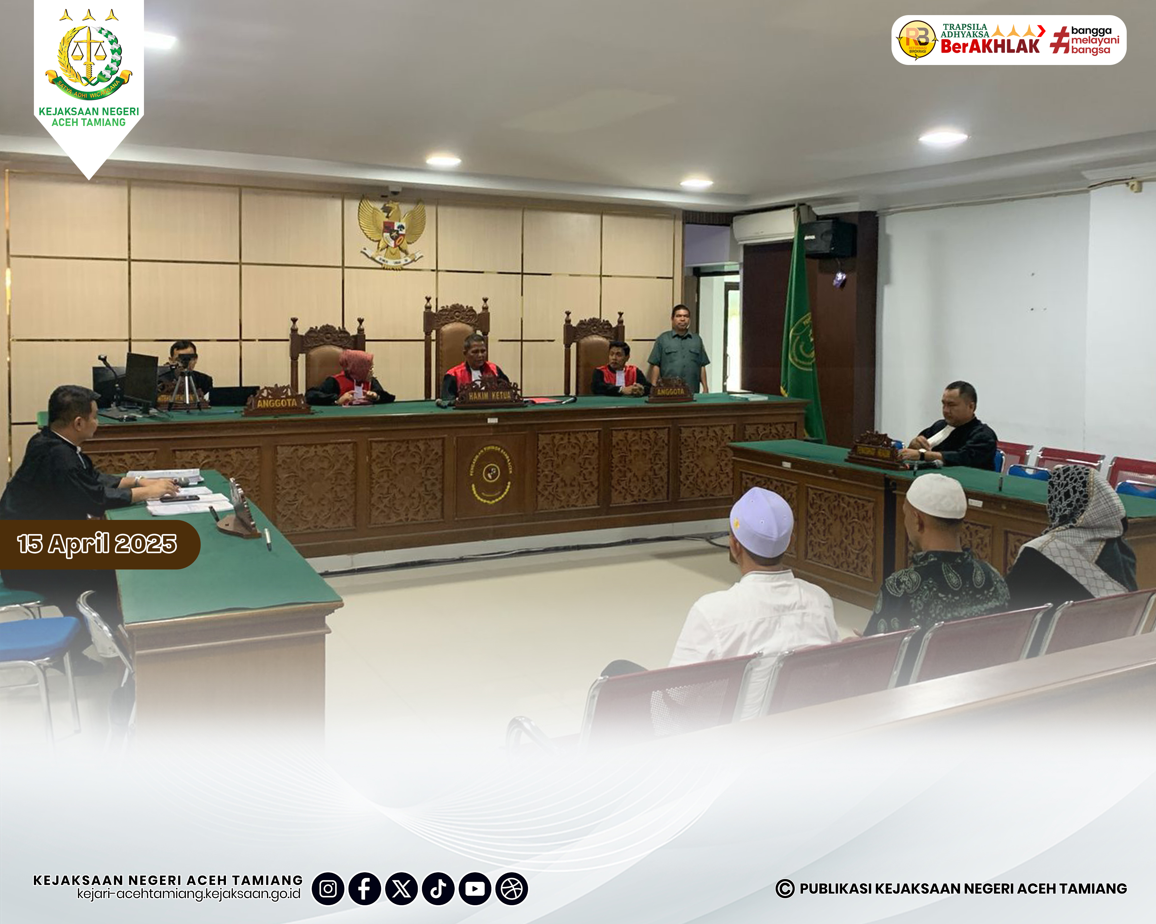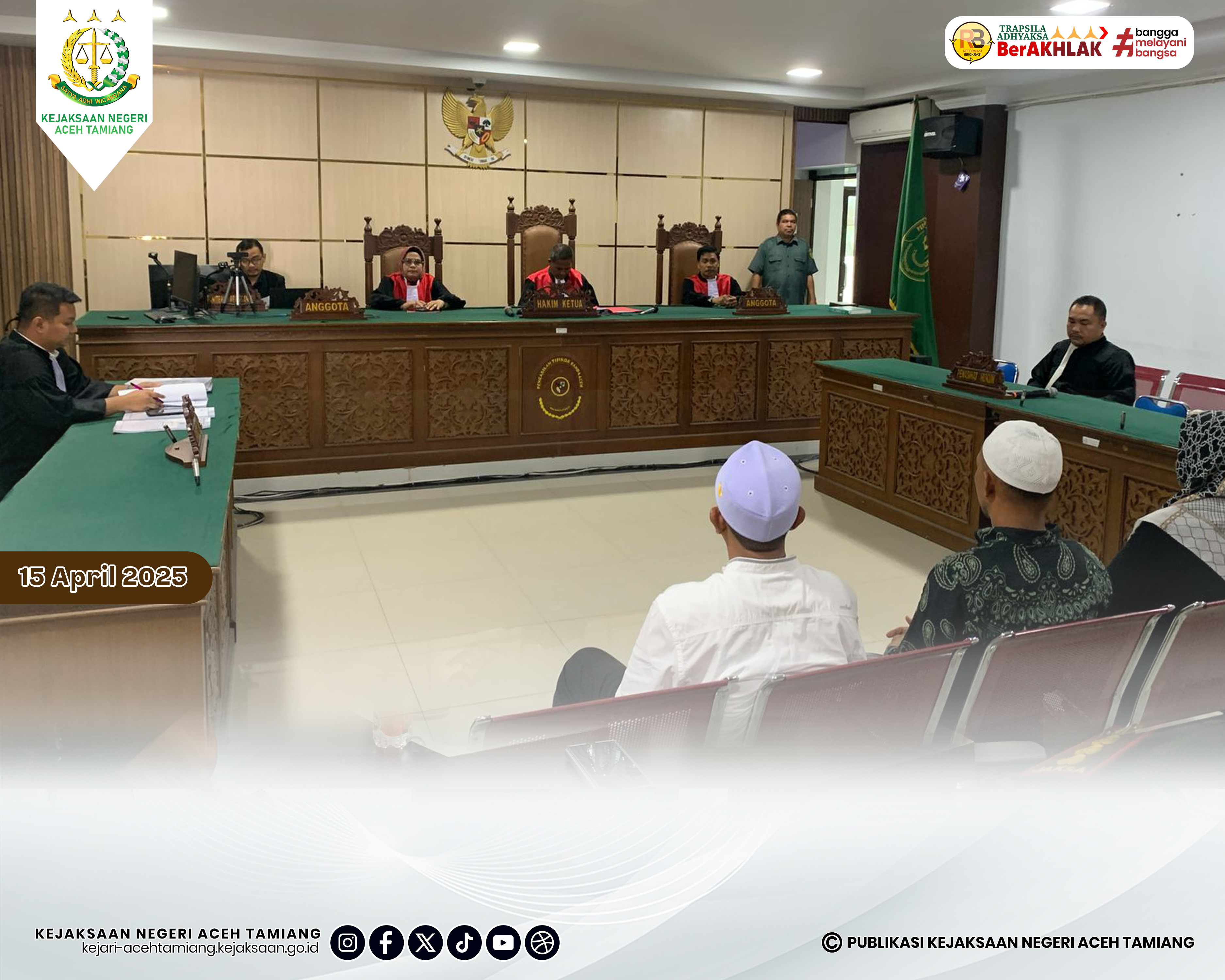 [Selasa,15 April 2025] Jaksa Penuntut Umum pada Kejaksaan Negeri Aceh tamiang telah membacakan tuntutan terhadap 3 (tiga) terdakwa perkara tindak pidana korupsi pembangunan Jalan Sukajadi-Inginjaya Kecamatan Rantau Kabupaten Aceh Tamiang yang telah merugikan keuangan negara sebesar Rp738.718.195,- (tujuh ratus tiga puluh delapan tujuh ratus delapan belas seratus sembilan puluh lima ribu rupiah) yaitu Sri Novita, S.T., M.M. Binti Muhammad Hanafiah (Alm) selaku Kuasa Pengguna Anggaran (KPA), Azhar Bin Abdul Mahmud selaku Direktur Cabang PT. Arhindo Artha Utama dan Amarullah, S.T. Bin Muhammad Ali Abdullah selaku Direktur CV. Lala Consultant di Ruang Sidang Tipikor I Pengadilan Tipikor Banda Aceh