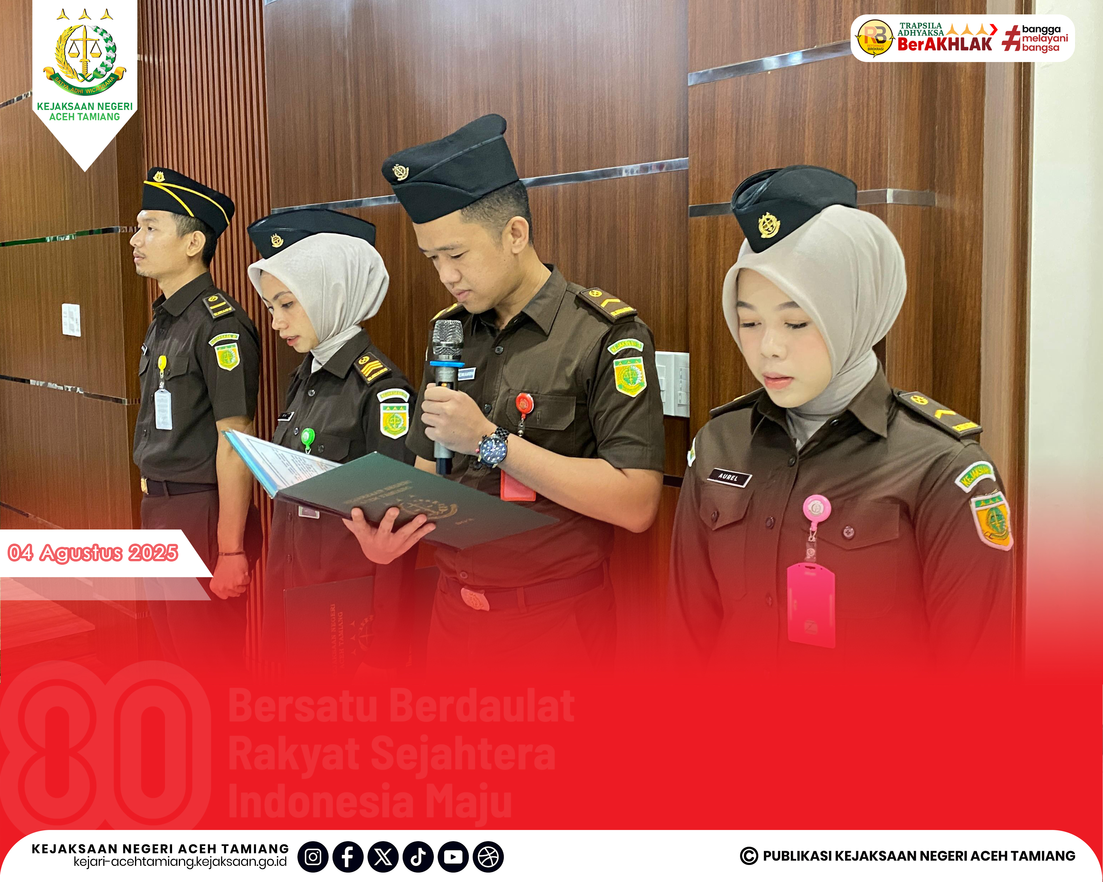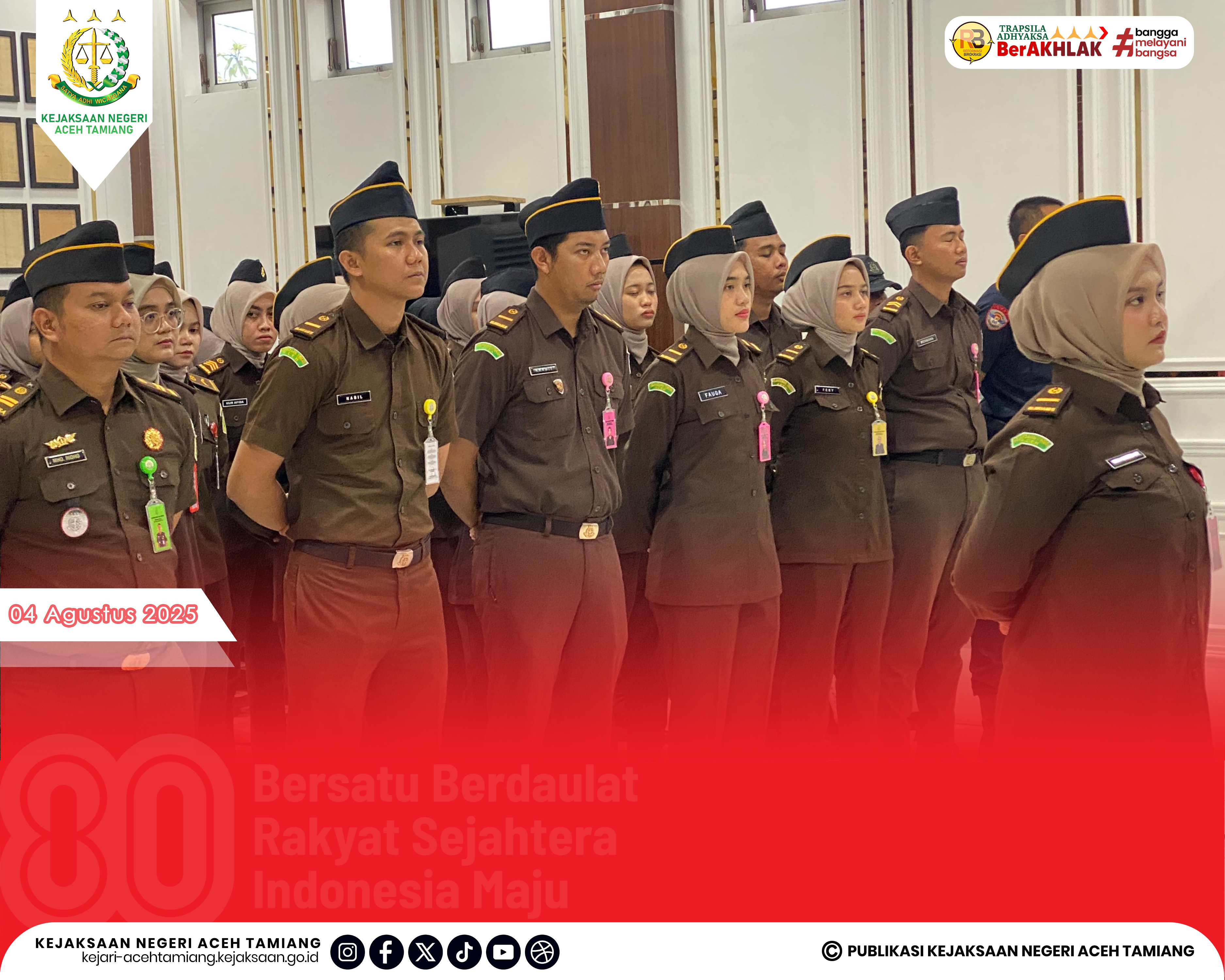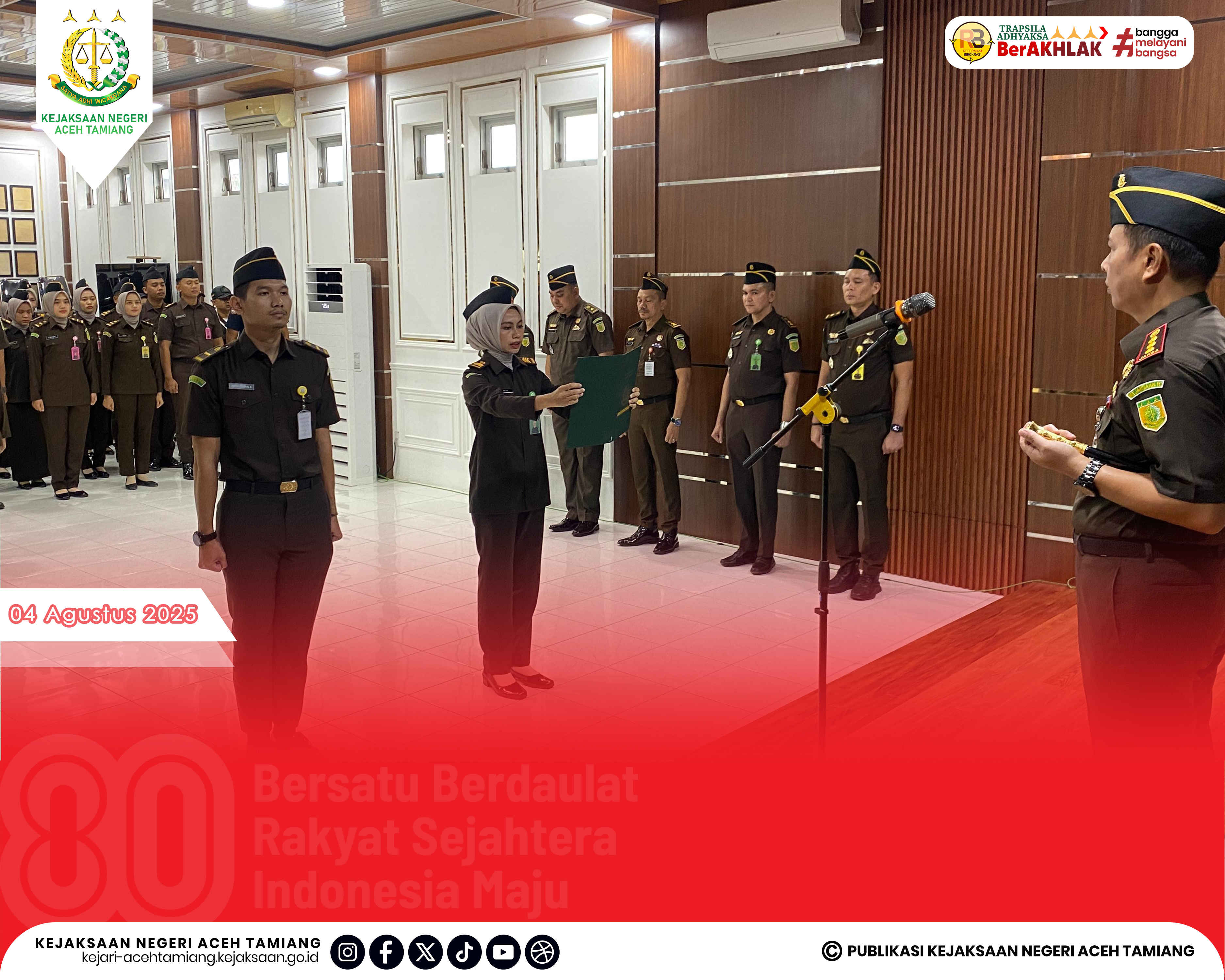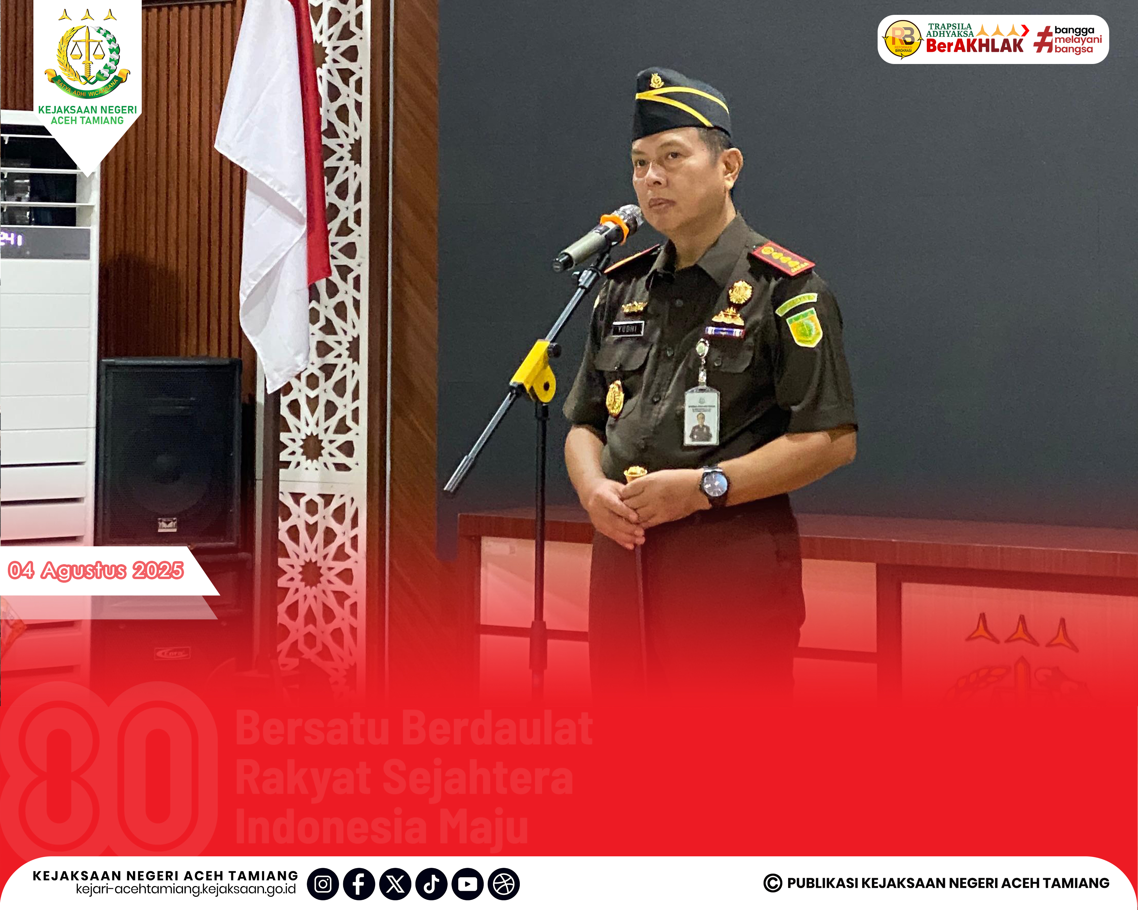 [Senin, 04 Agustus 2025] Kepala Kejaksaan Negeri Aceh Tamiang Bapak Dr. Yudhi Syufriadi, S.H., M.H. Pimpin Apel Kerja Senin Pagi yang Dihadiri oleh Seluruh Jajaran Kasi, Kasubag, Kasubsi, Kaur, Para Pegawai dan Tenaga Outsourching di Halaman Kantor Kejaksaan Negeri Aceh Tamiang.