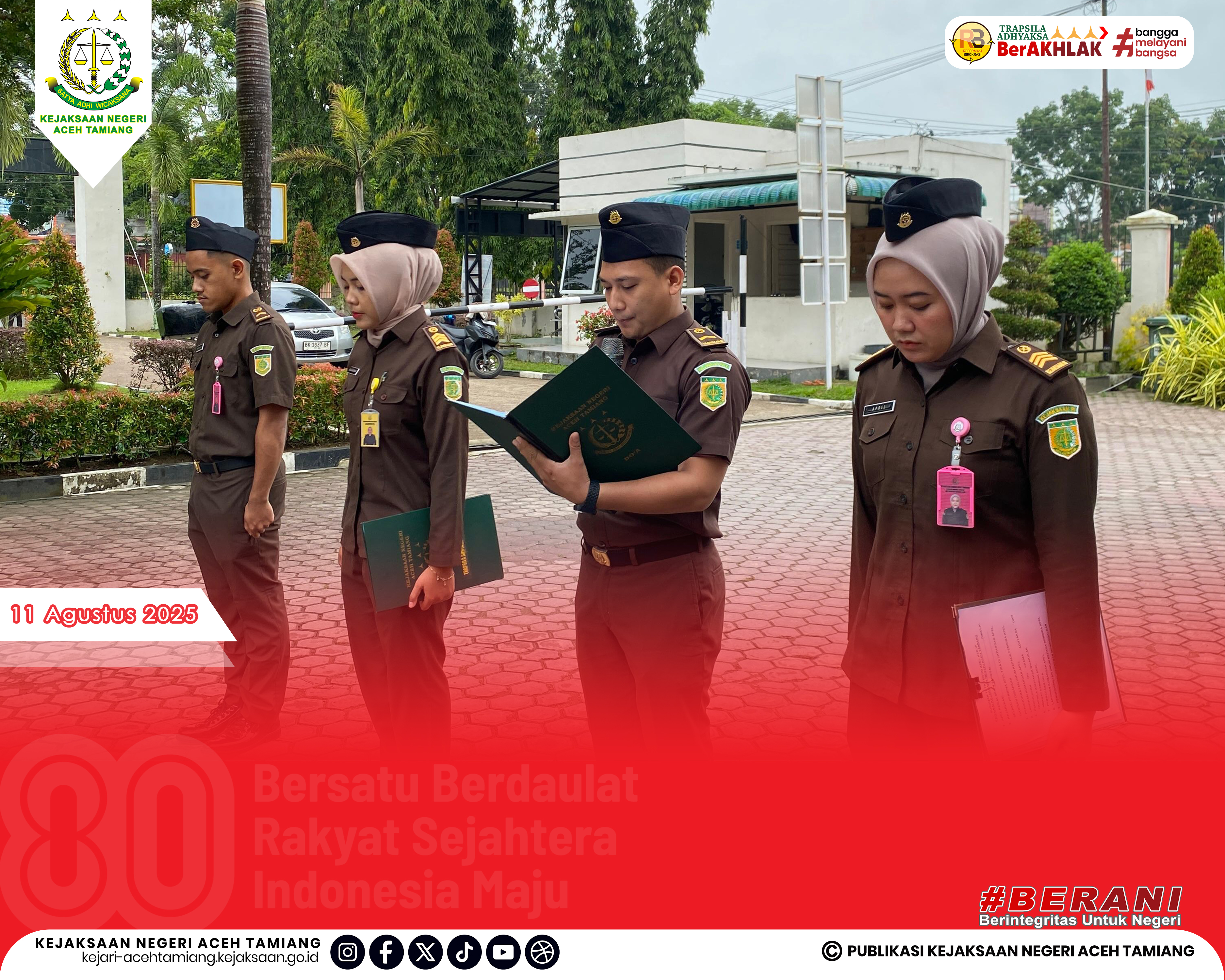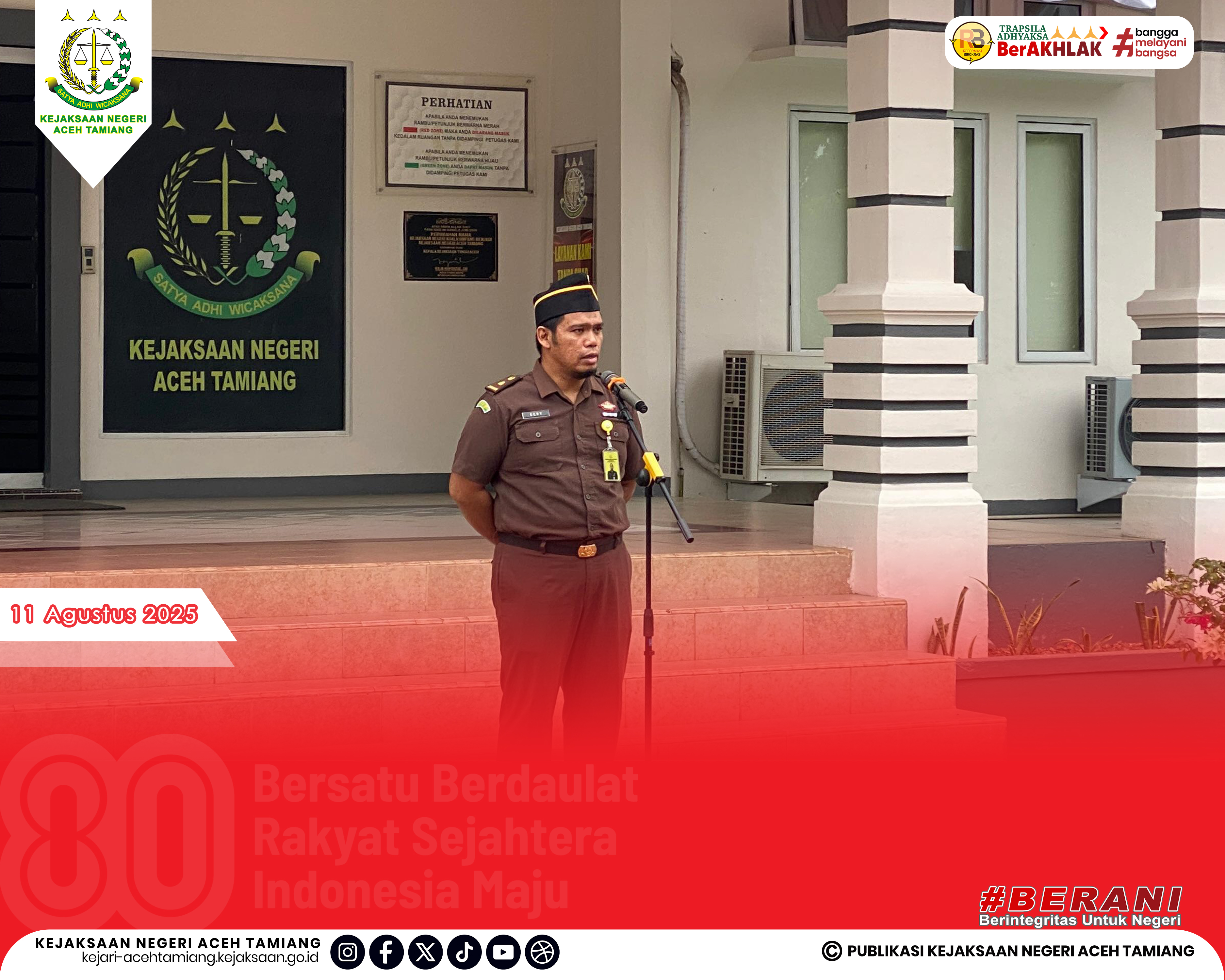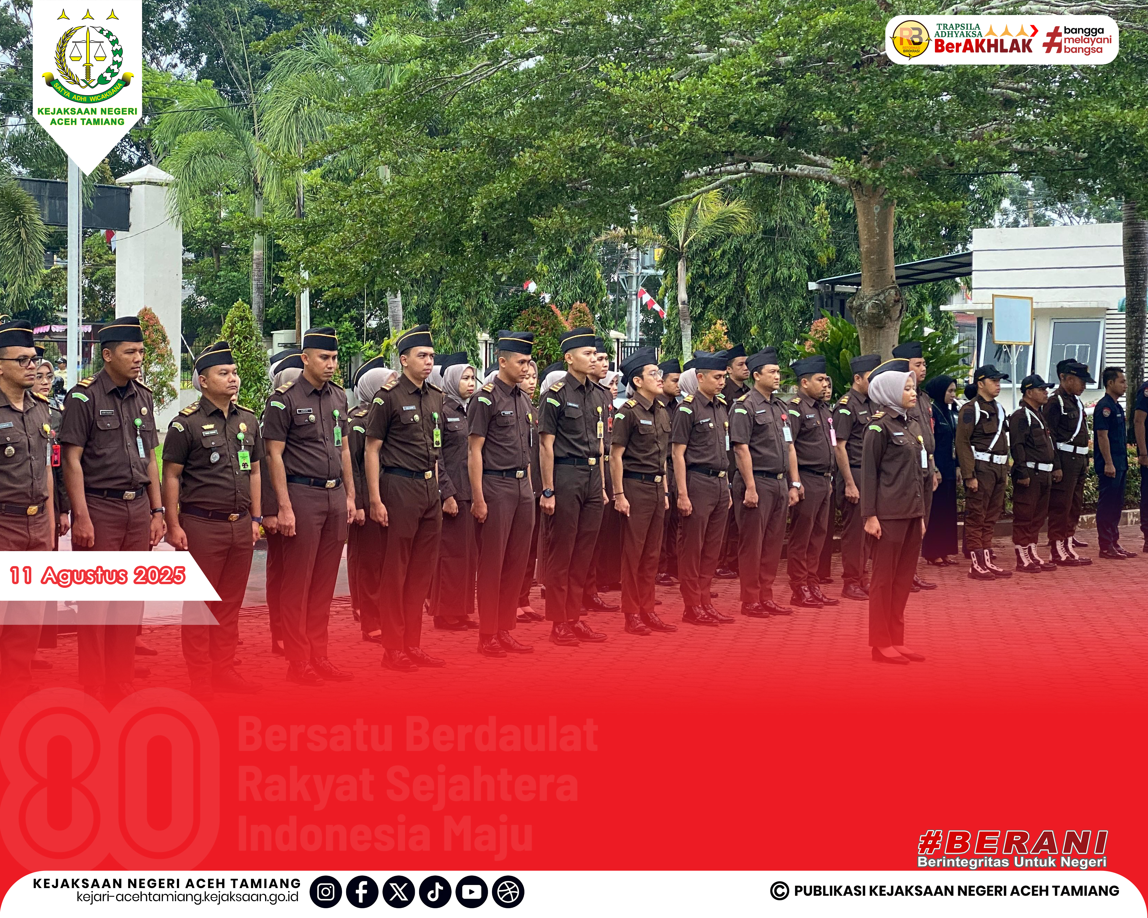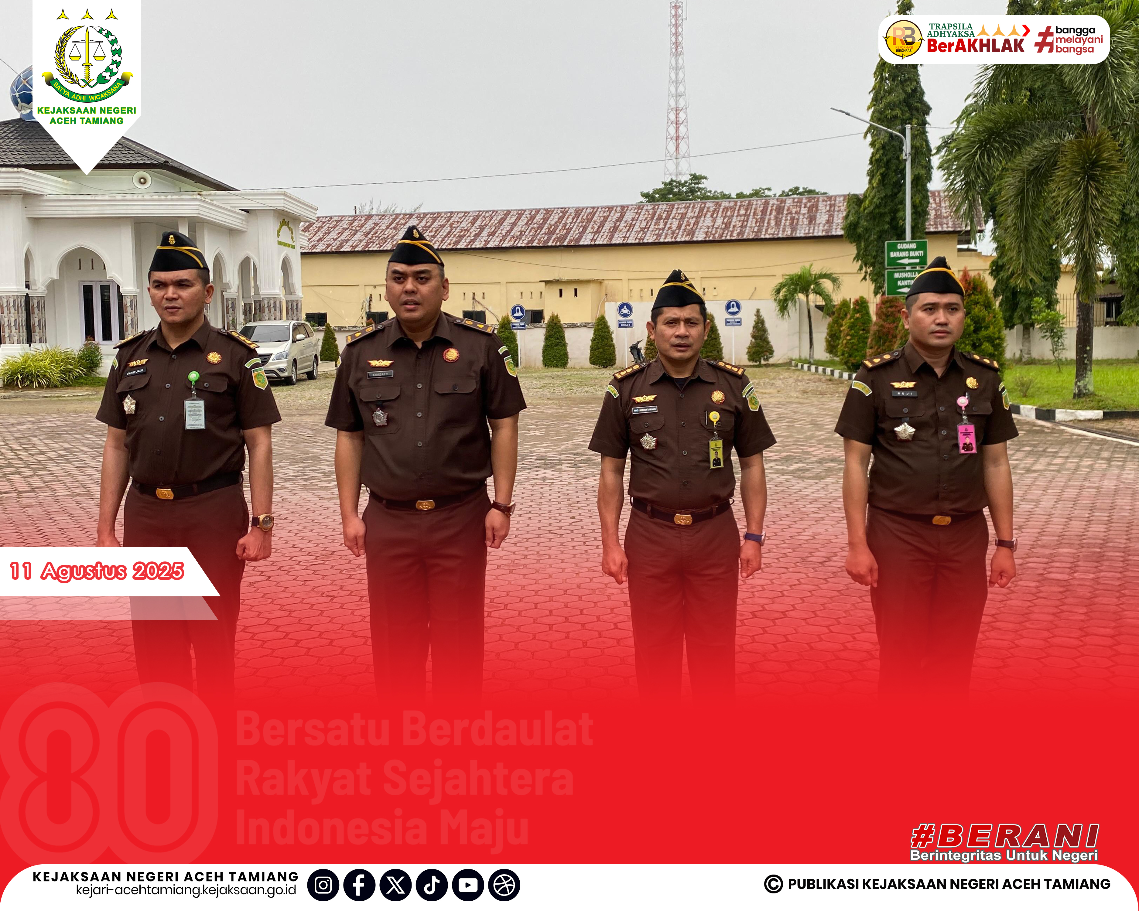 [Senin, 11 Agustus 2025] Jajaran Kejaksaan Negeri Aceh Tamiang Laksanakan Apel Kerja Senin Pagi di Halaman Kantor Kejaksaan Negeri Aceh Tamiang.