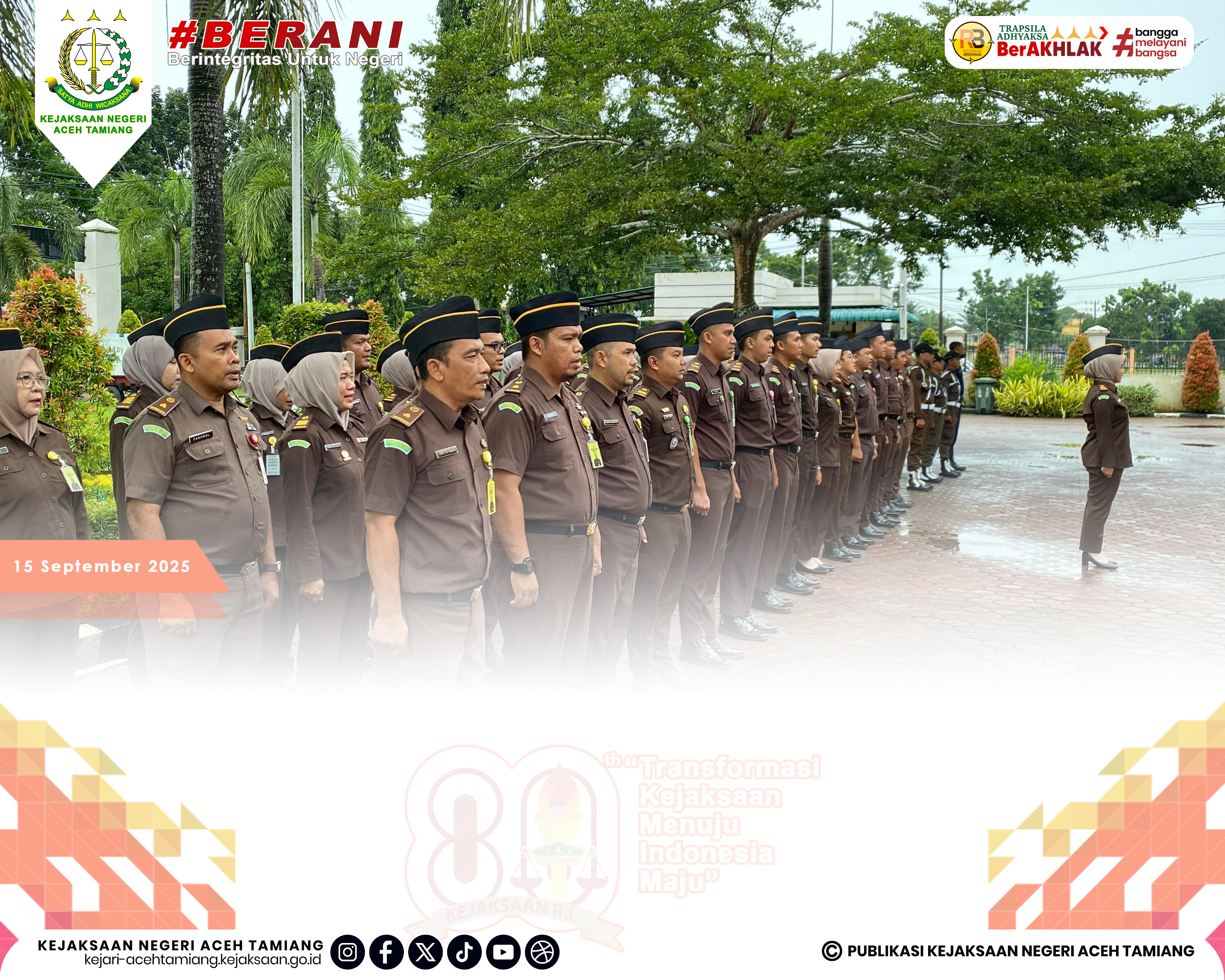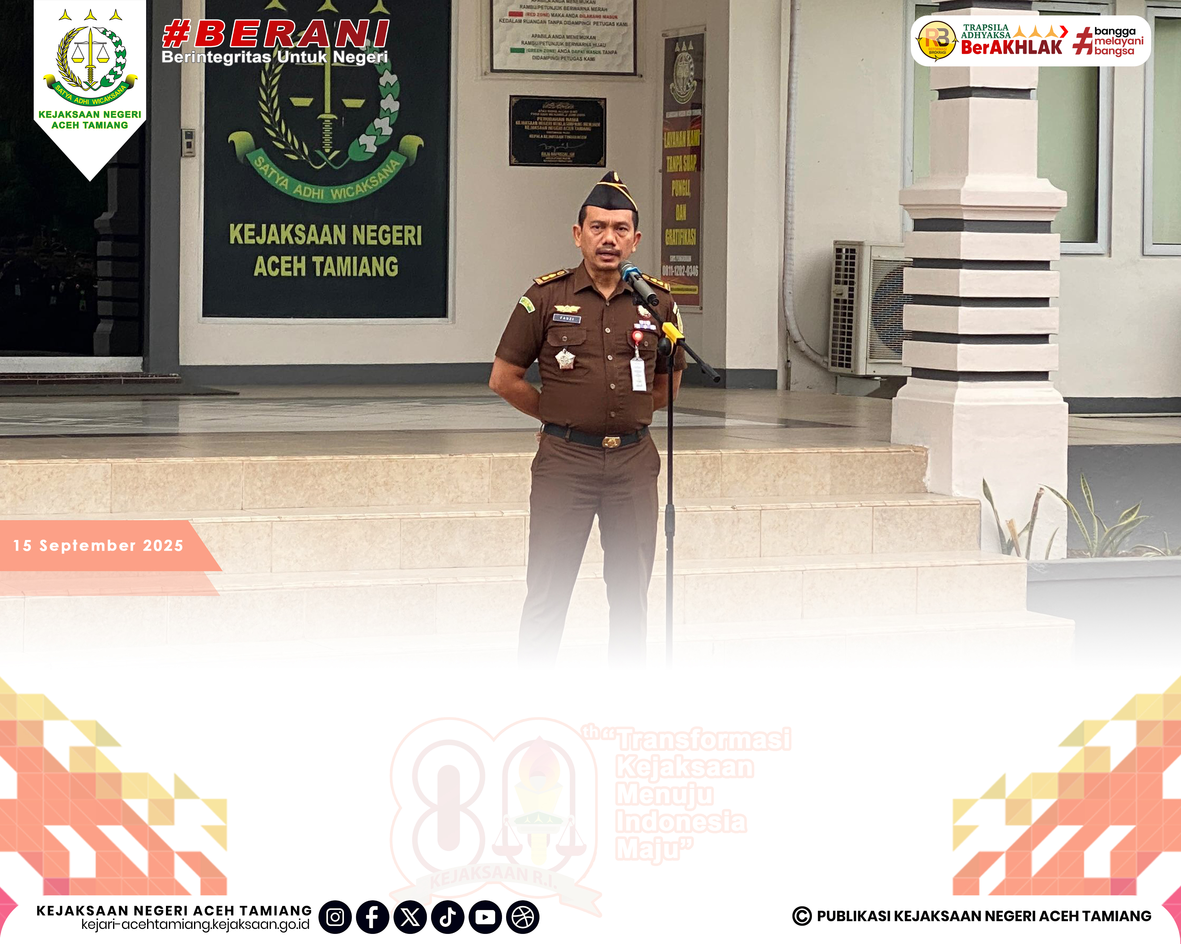 [Senin, 15 September 2025] Kepala Seksi Tindak Pidana Umum Kejaksaan Negeri Aceh Tamiang Bapak Fauzi, S.H. Pimpin Apel Kerja Senin Pagi yang Dihadiri oleh Seluruh Jajaran Kasi, Kasubag, Kasubsi, Kaur, Para Pegawai dan Tenaga Outsourching di Halaman Kantor Kejaksaan Negeri Aceh Tamiang.