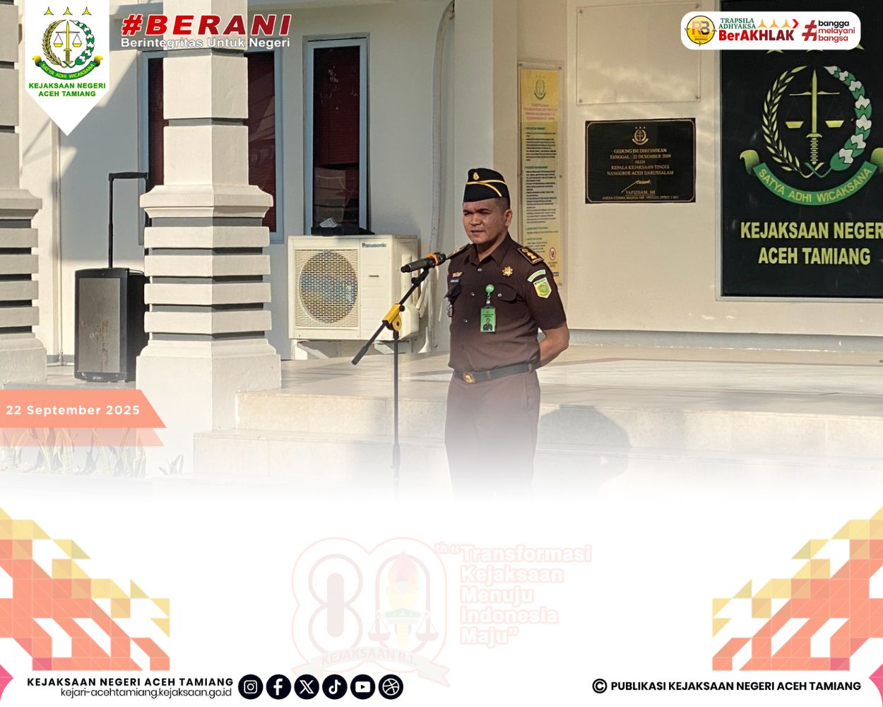 [Senin, 22 September 2025] Kepala Seksi Intelijen Kejaksaan Negeri Aceh Tamiang Bapak Fahmi Jalil, S.H., M.H. Pimpin Apel Kerja Senin Pagi yang dihadiri oleh Jajaran Para Pegawai dan Tenaga Outsourching di Halaman Kantor Kejaksaan Negeri Aceh Tamiang.