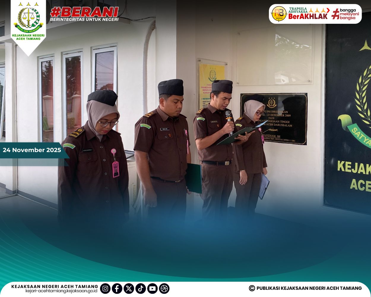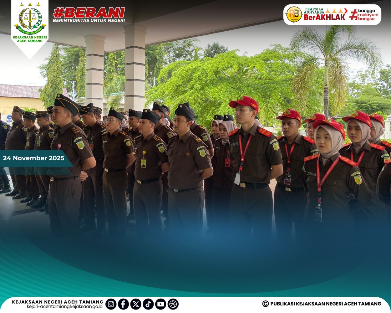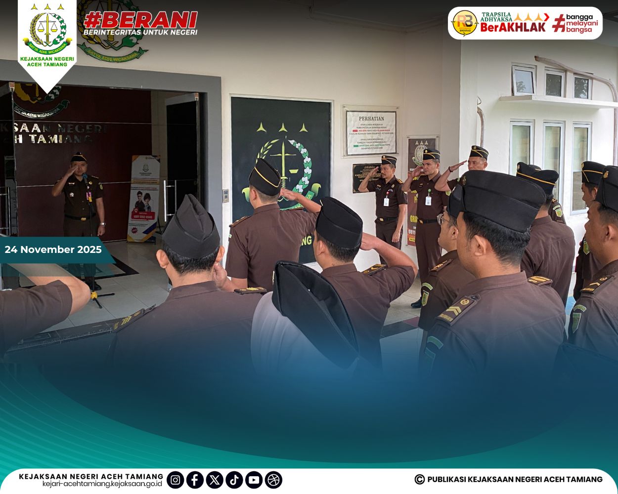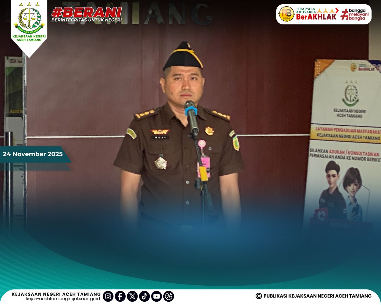 [Senin, 24 November 2025] Kepala Seksi Tindak Pidana Khusus Kejaksaan Negeri Aceh Tamiang Bapak Ruji Wibowo, S.H., M.H. Pimpin Apel Kerja Senin Pagi yang dihadiri oleh Jajaran Para Kasi dan Kasubbag, Kasubsi, Kaur, Para Pegawai dan Tenaga Outsourching di Halaman Kantor Kejaksaan Negeri Aceh Tamiang.