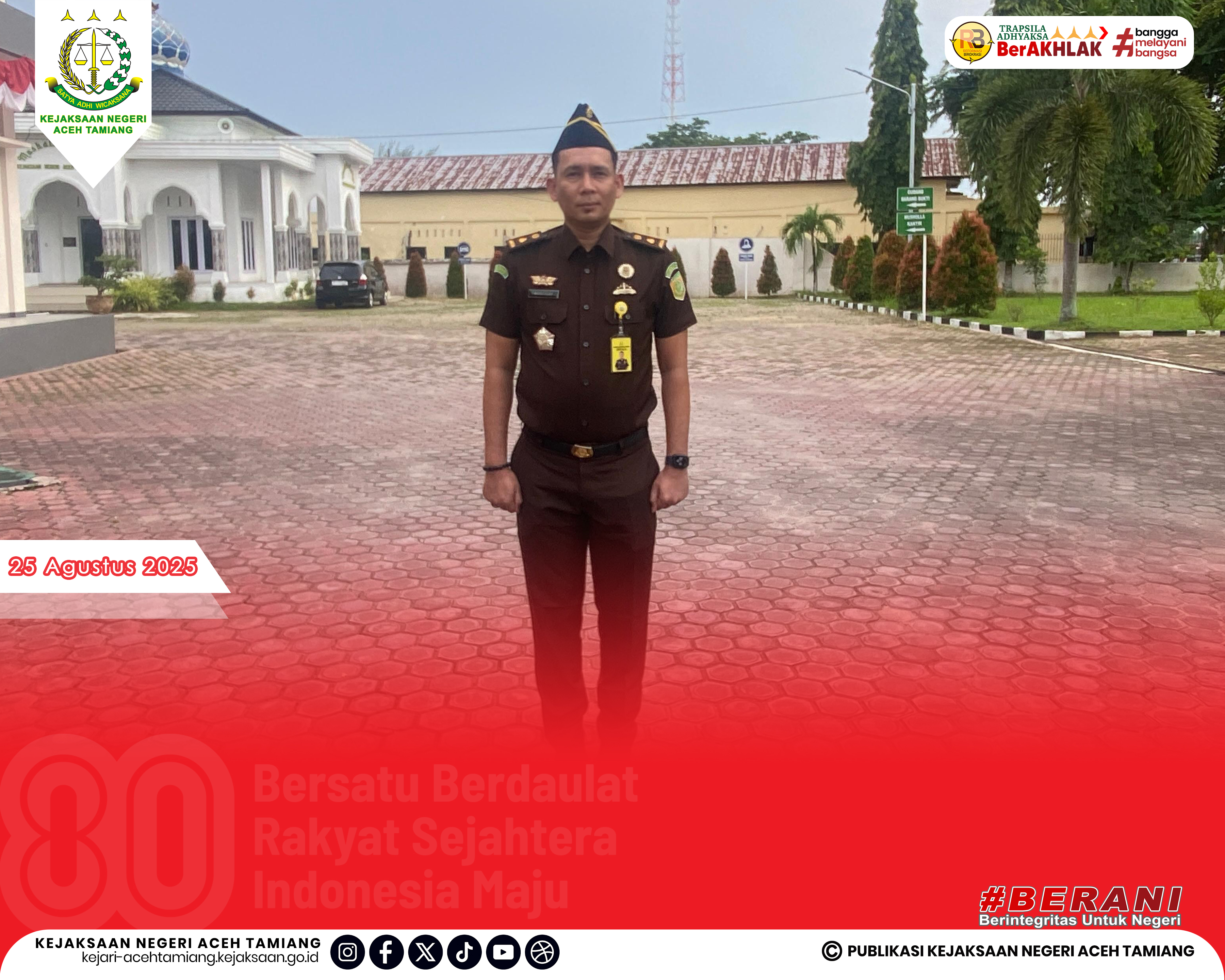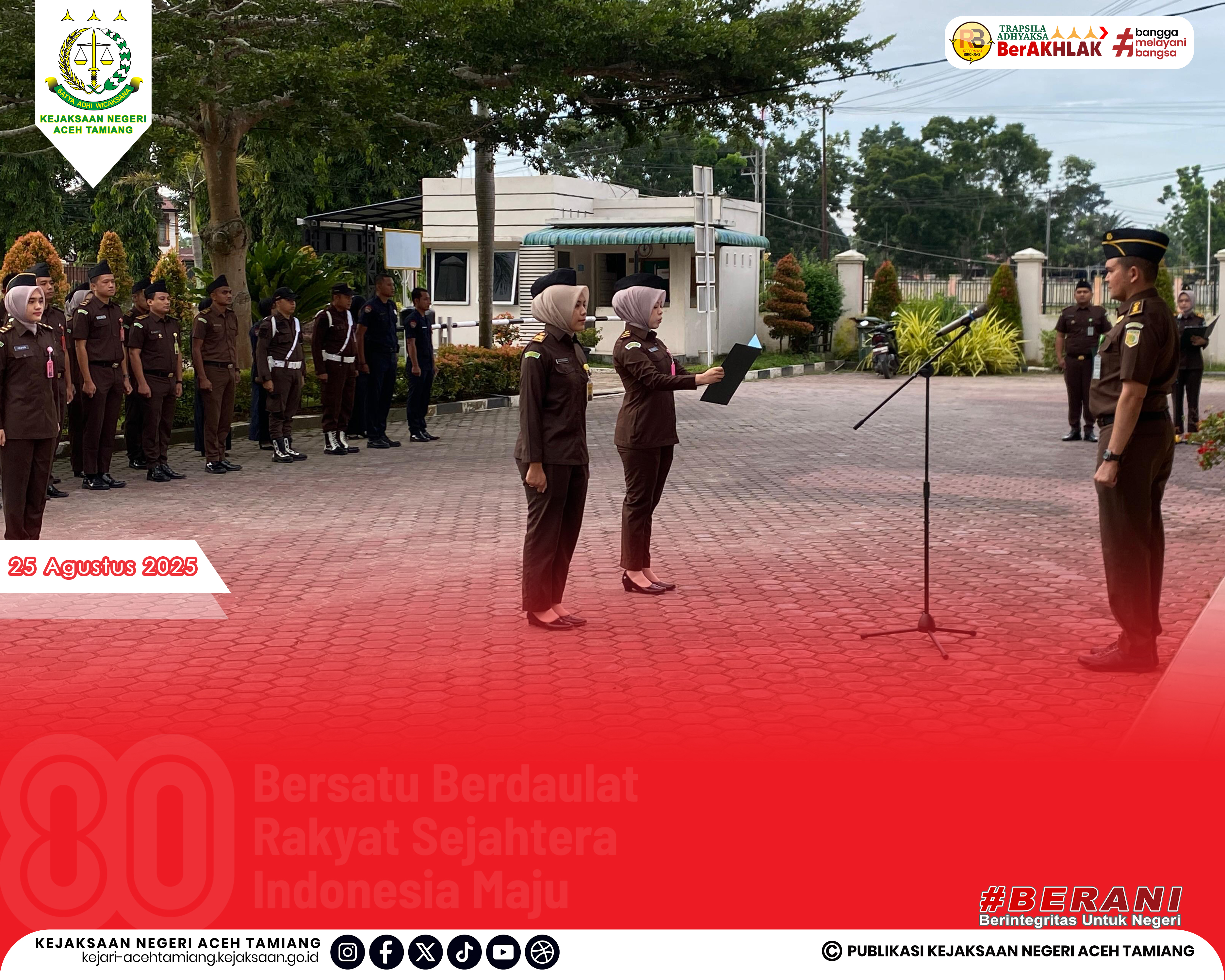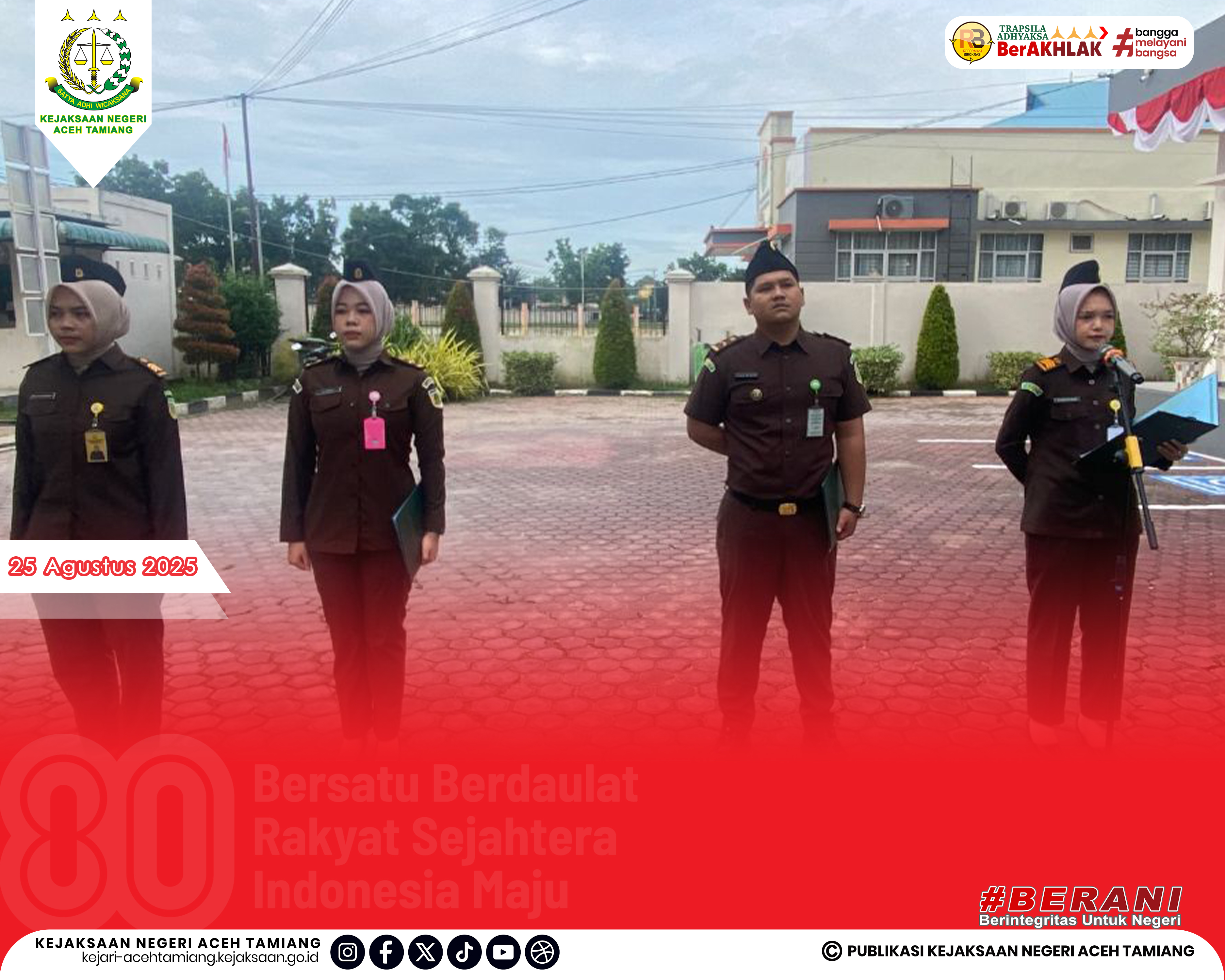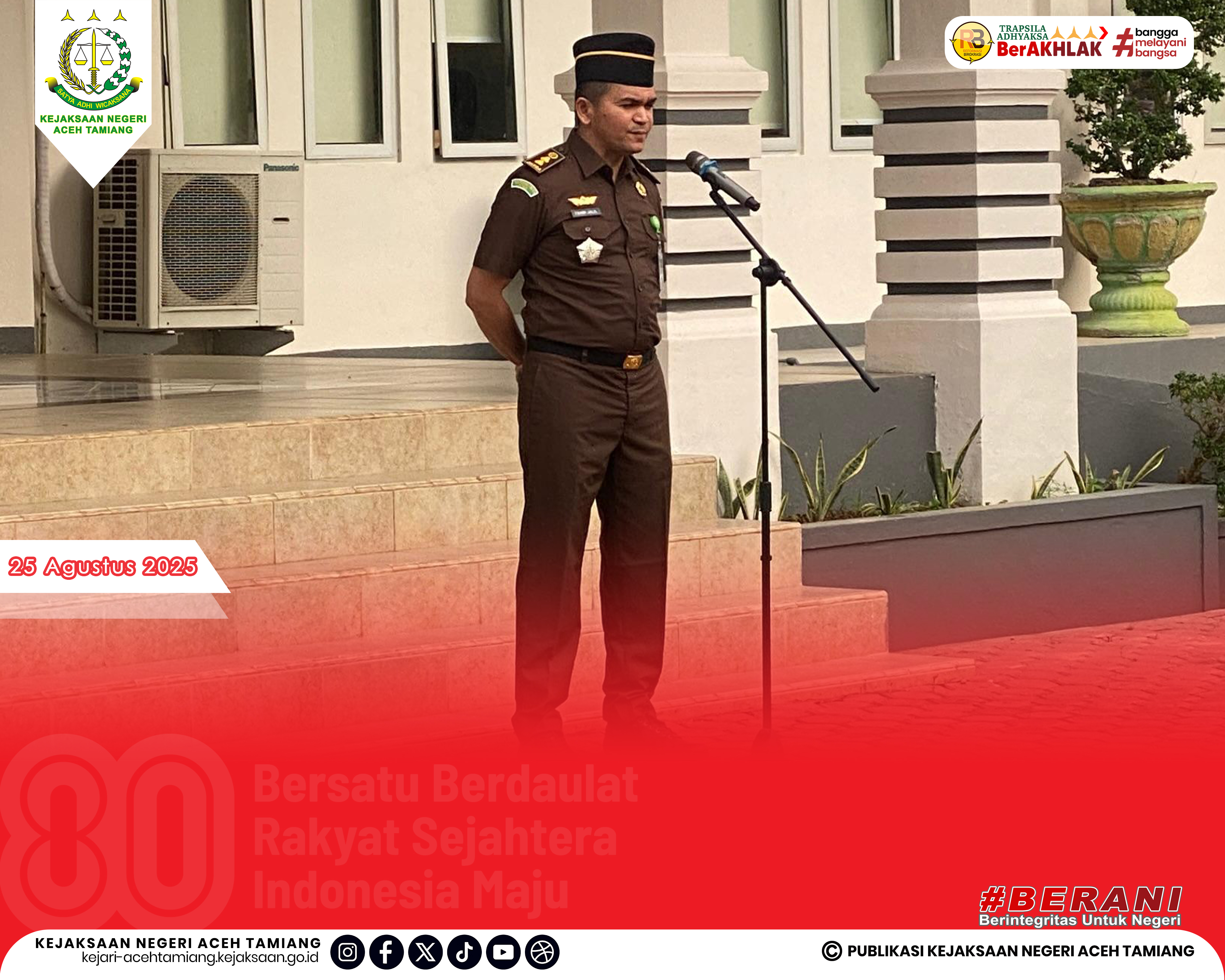 [Senin, 25 Agustus 2025] Kepala Seksi Intelijen Kejaksaan Negeri Aceh Tamiang Bapak Fahmi Jalil, S.H., M.H. Pimpin Apel Kerja Senin Pagi yang Dihadiri oleh Seluruh Jajaran Para Pegawai dan Tenaga Outsourching di Halaman Kantor Kejaksaan Negeri Aceh Tamiang.