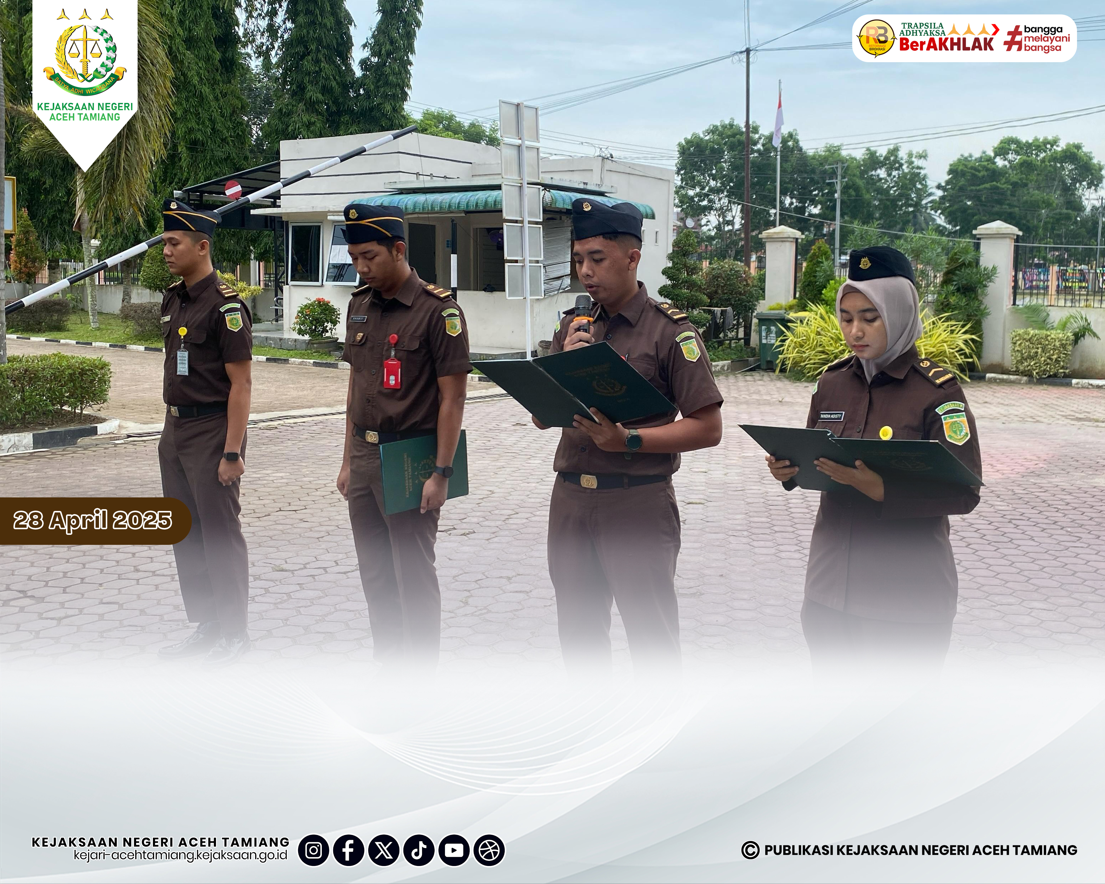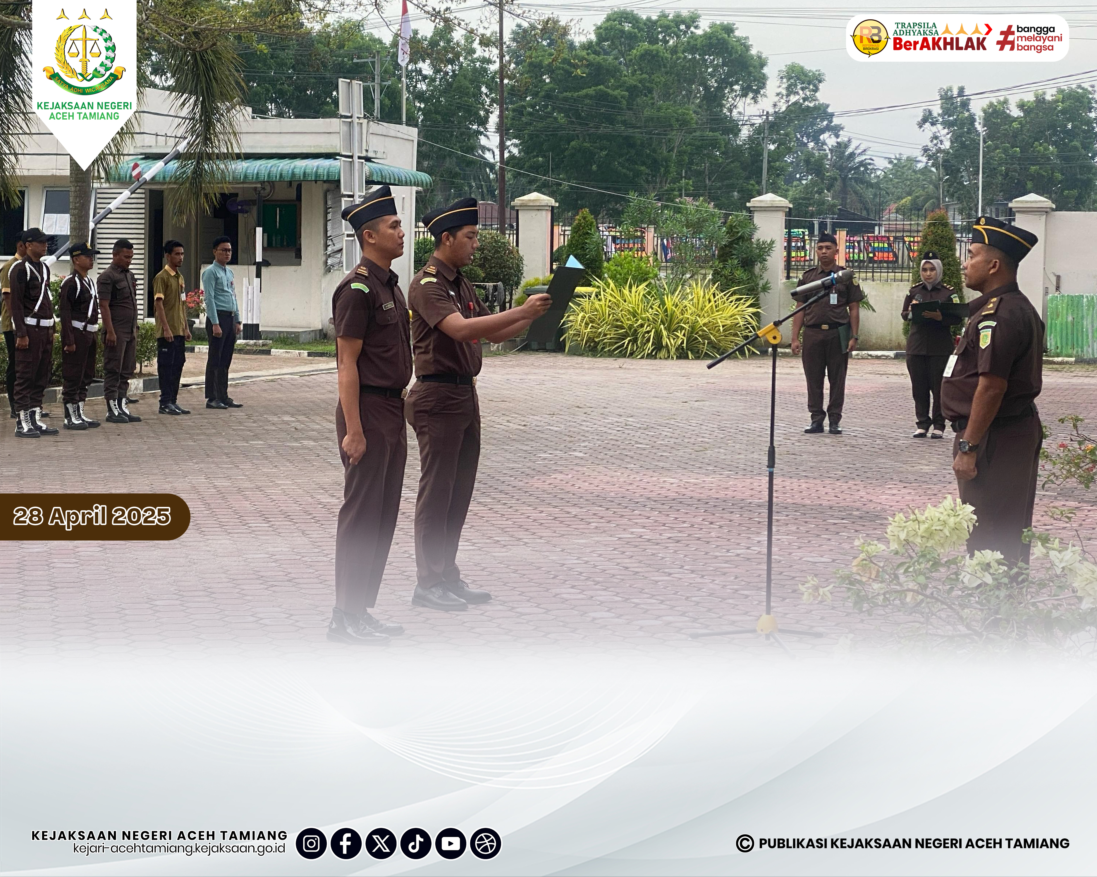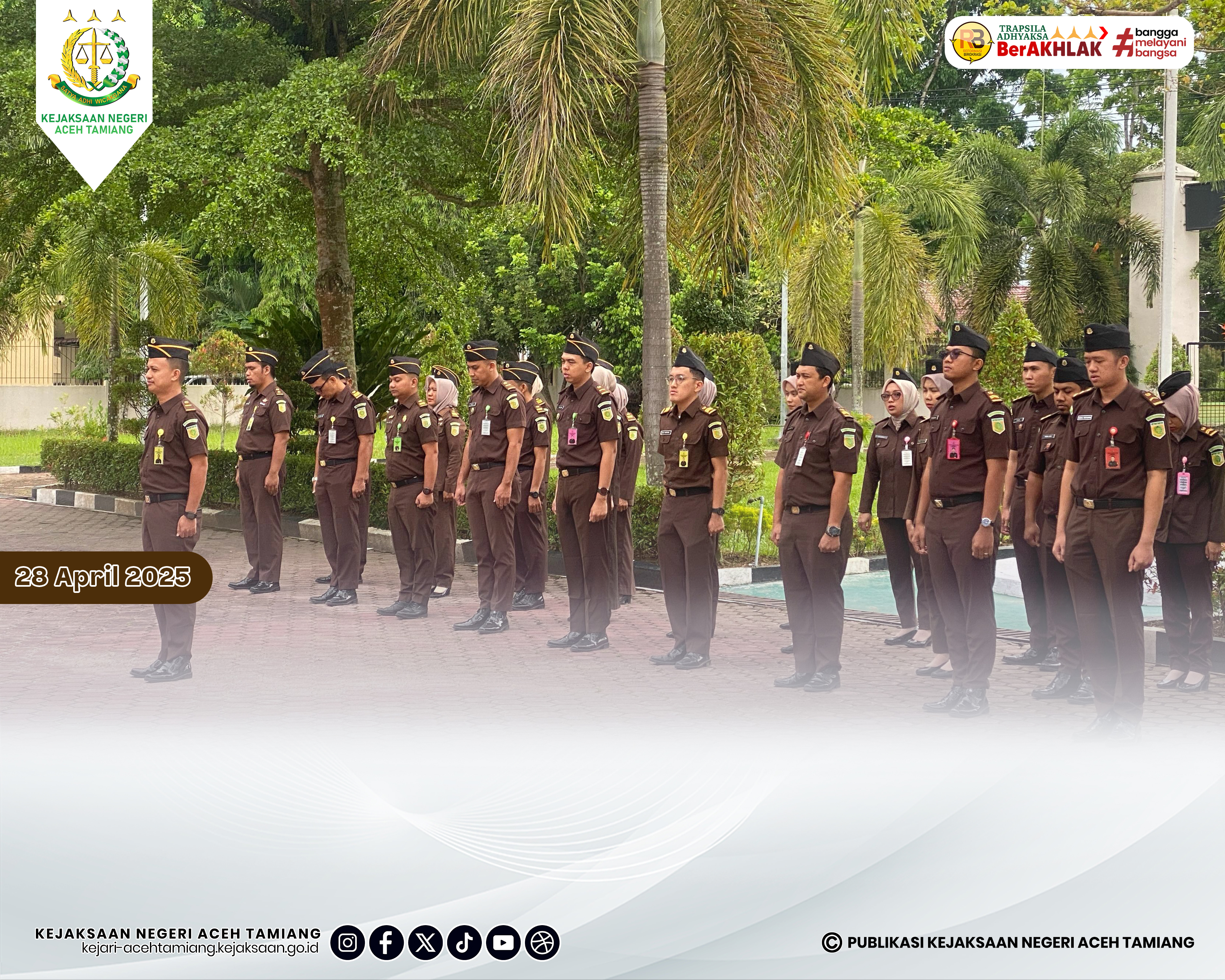 [Senin, 28 April 2025] Jajaran Kejaksaan Negeri Aceh Tamiang Laksanakan Apel Kerja Senin Pagi yang Dihadiri oleh Seluruh Jajaran Kasi, Kasubag, Kasubsi, Kaur, Para Pegawai dan Tenaga Outsourching di Halaman Kantor Kejaksaan Negeri Aceh Tamiang.