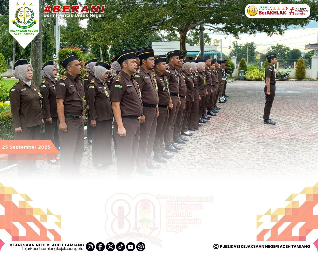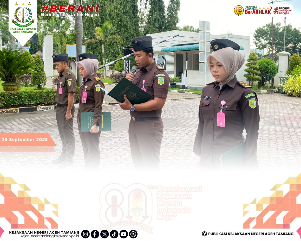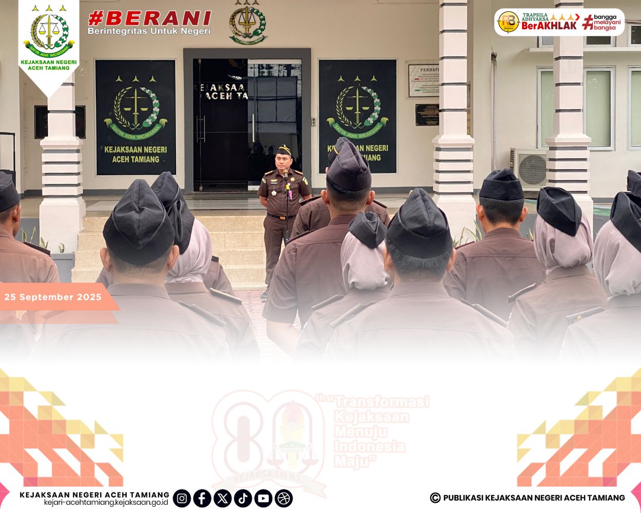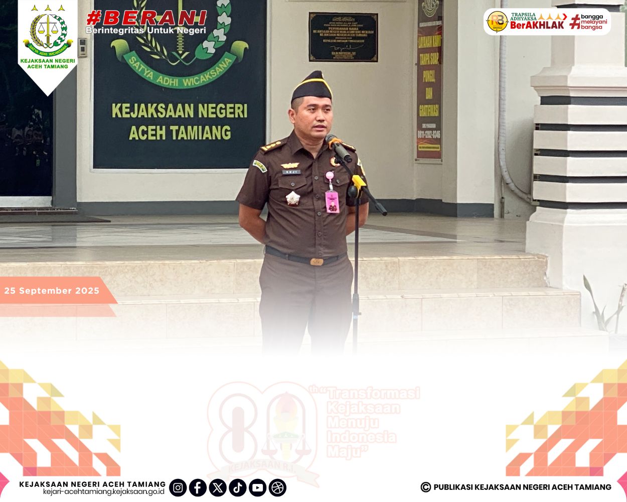 [Senin, 29 September 2025] Kepala Seksi Tindak Pidana Pidsus Kejaksaan Negeri Aceh Tamiang Bapak Ruji Wibowo, S.H., M.H. Pimpin Apel Kerja Senin Pagi yang dihadiri oleh Jajaran Para Kasi, Para Pegawai dan Tenaga Outsourching di Halaman Kantor Kejaksaan Negeri Aceh Tamiang.