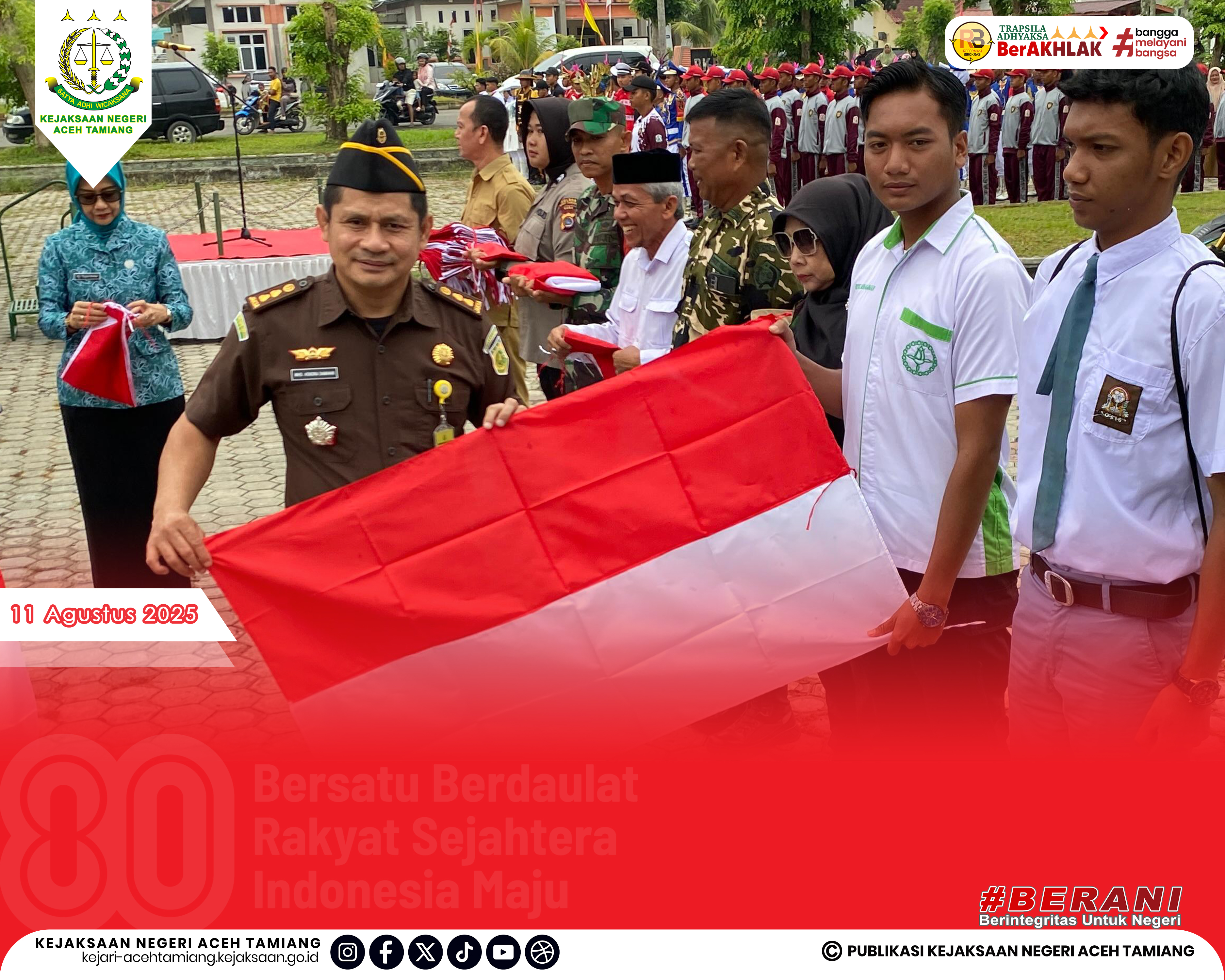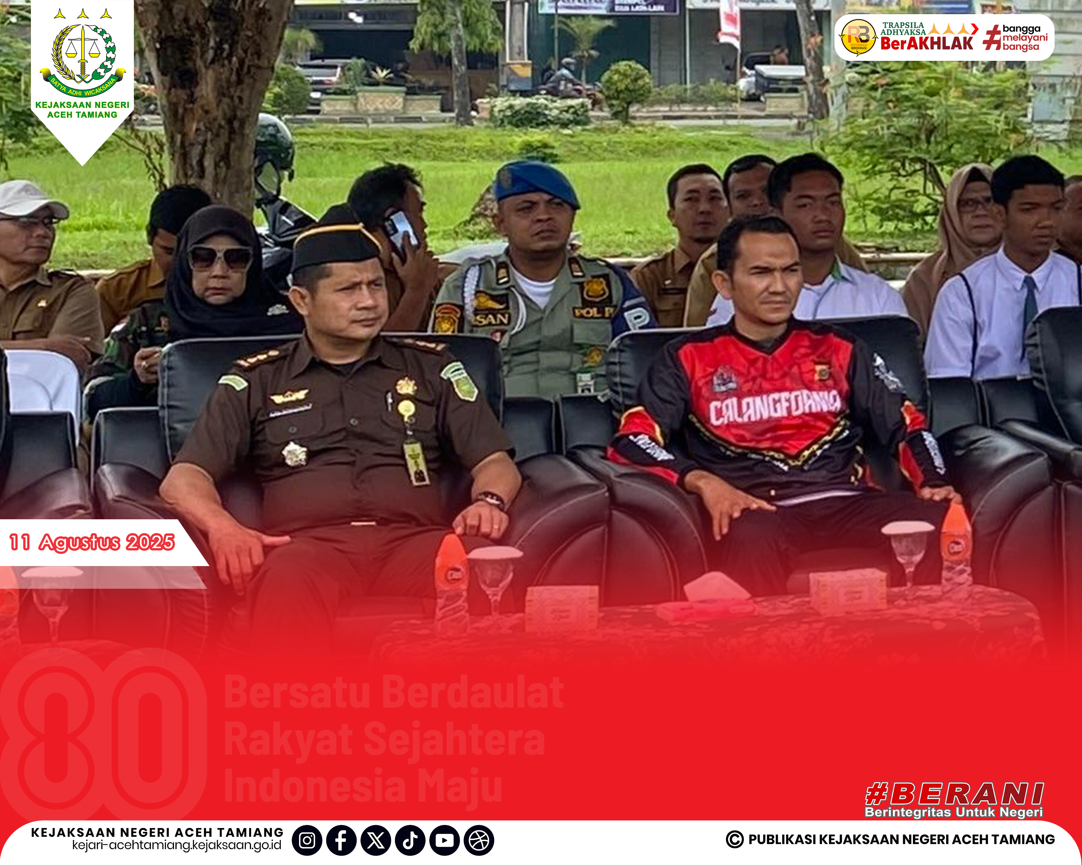 [Senin, 11 Agustus 2025] Kepala Kejaksaan Negeri Aceh Tamiang yang diwakili Kepala Seksi Pemulihan Aset dan Pengelolaan Barang Bukti Bapak Mhd. Hendra Damanik, S.H., M.H. Menghadiri Apel Pelaksanaan Gerakan Pembagian Bendera Merah Putih dan Pembukaan Lomba Kreasi Baris-berbaris Tahun 2025 di Halaman Parkiran Setdakab Aceh Tamiang.