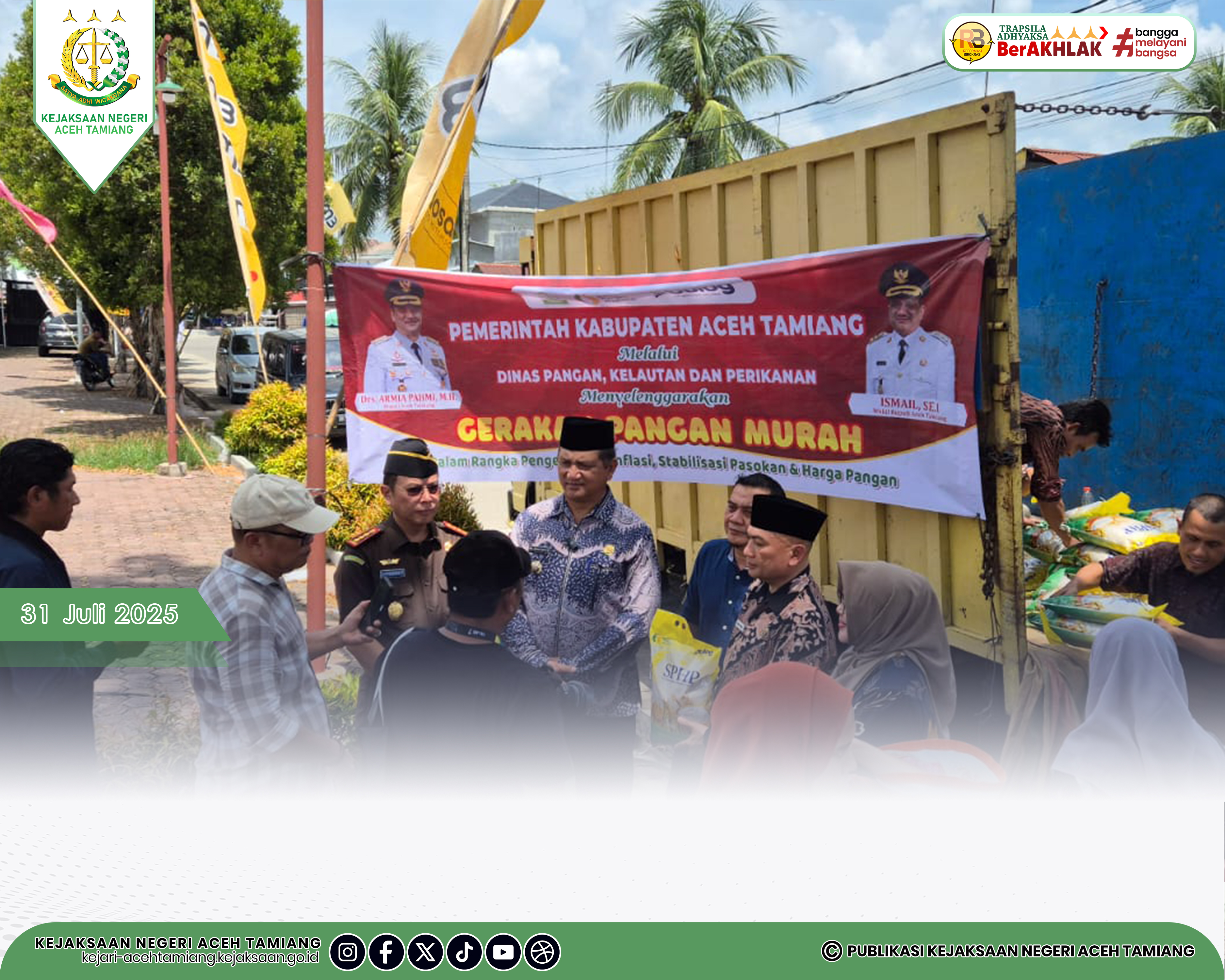 [Kamis, 31 Juli 2025] Kepala Kejaksaan Negeri Aceh Tamiang Bapak Dr. Yudhi Syufriadi, S.H., M.H. Menghadiri Gerakan Pangan Murah Pemerintah Kabupaten Aceh Tamiang Melalui Dinas Pangan, Kelautan, dan Perikanan dalam Rangka Pengendalian Inflasi, Stabilisasi Pasokan dan Harga Pangan di Halaman Pendopo Wakil Bupati di Kampung Kesehatan.