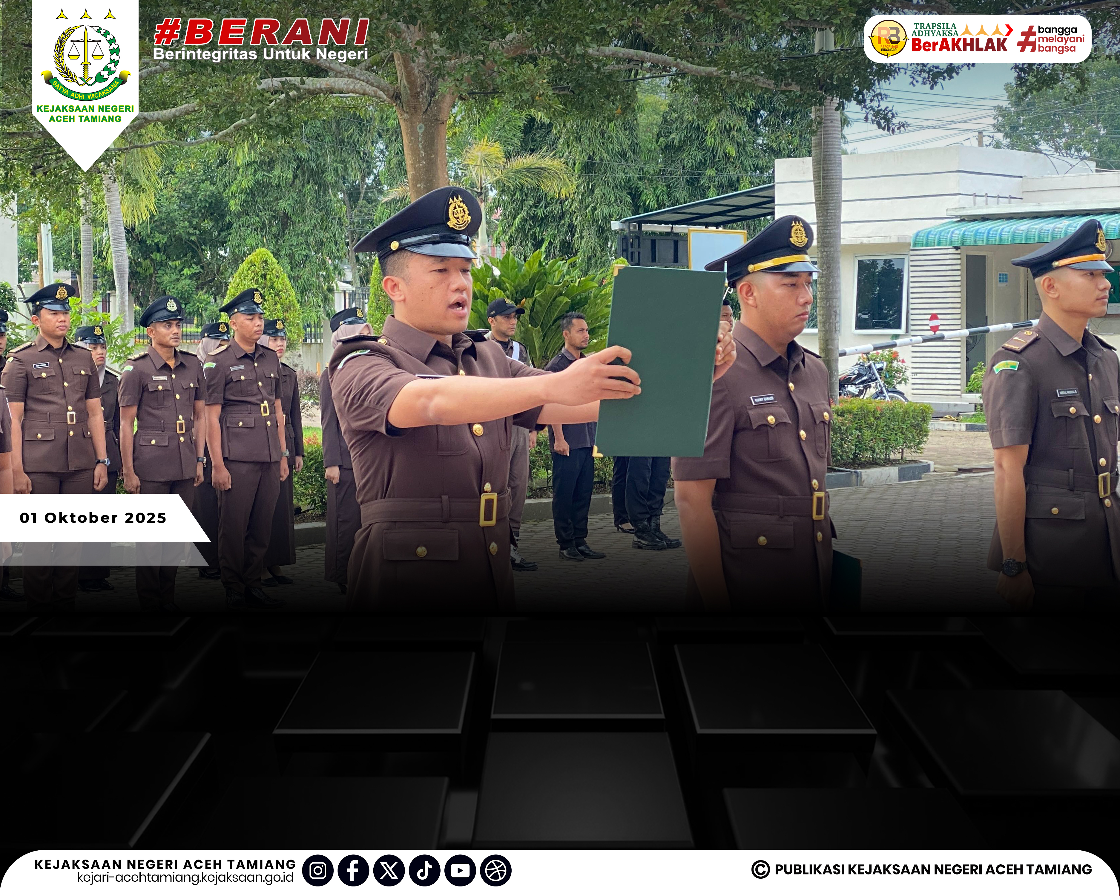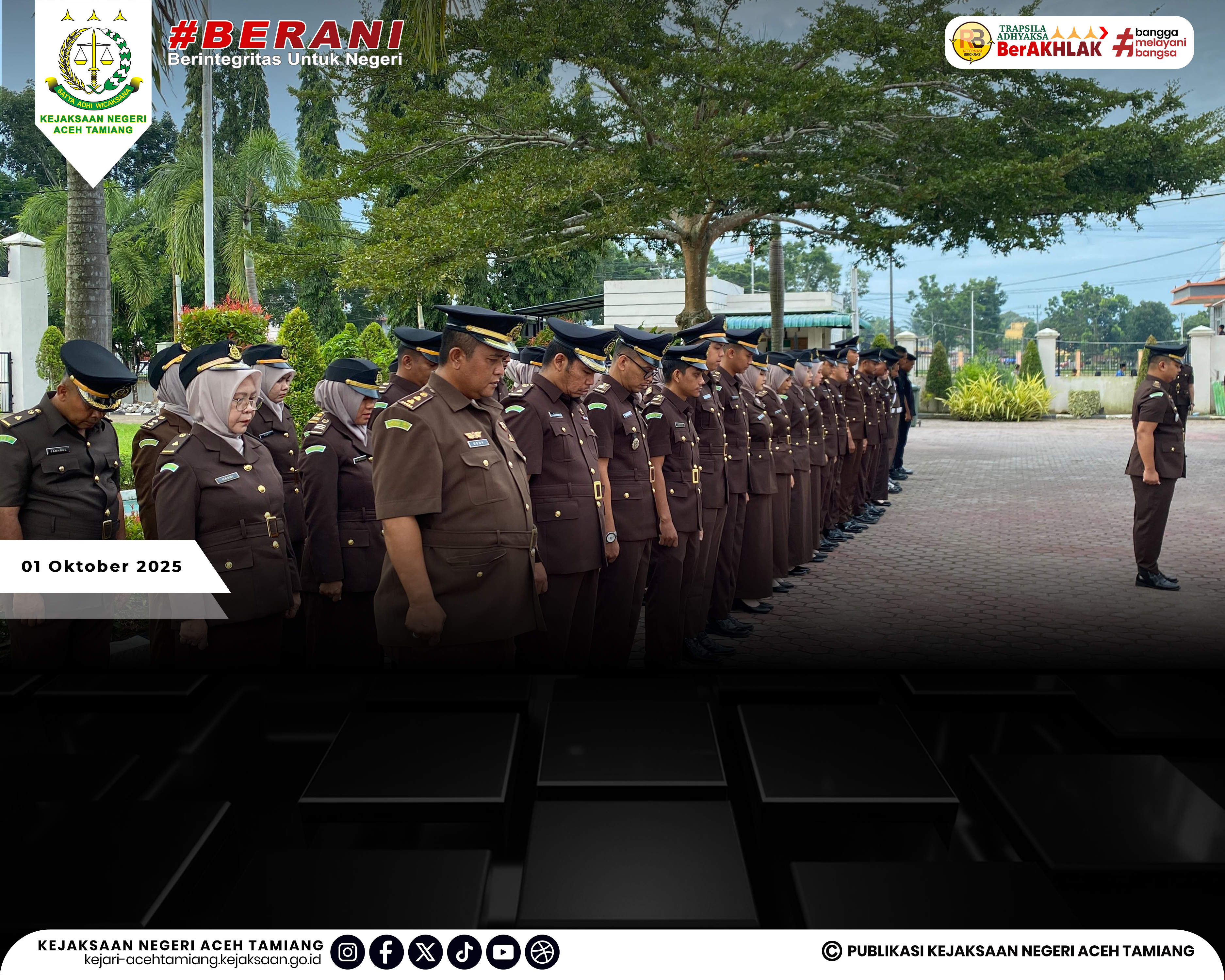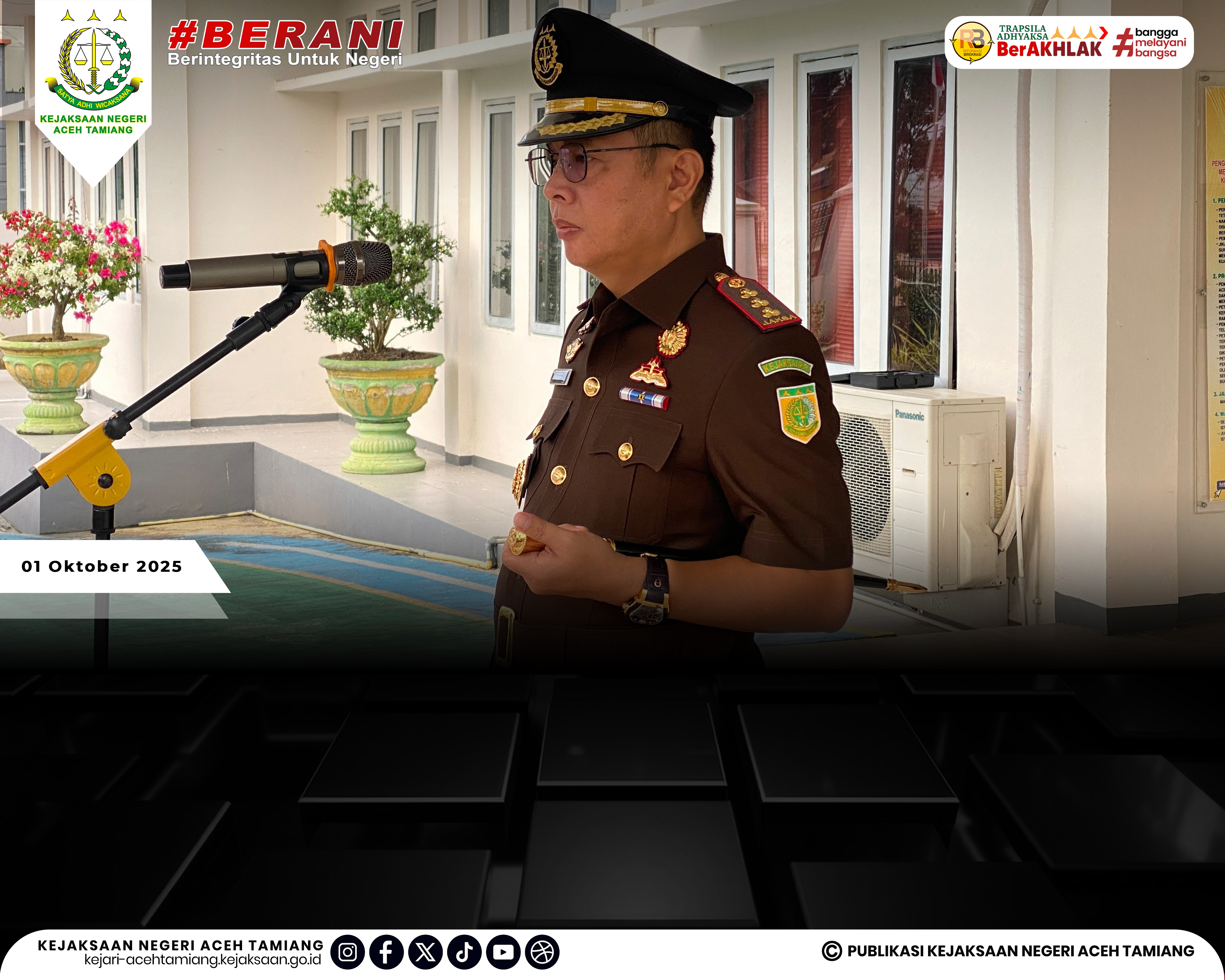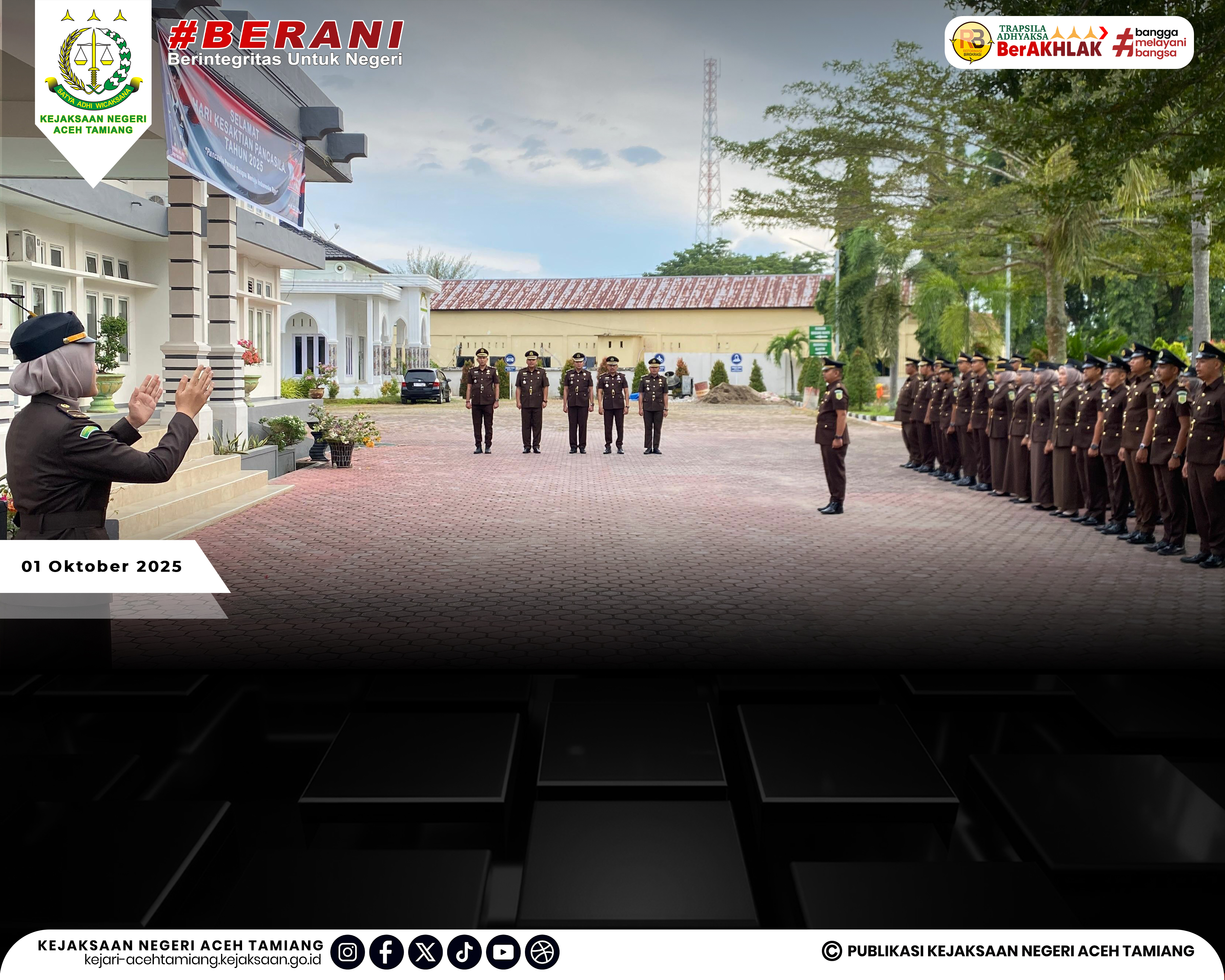 [Rabu, 01 Oktober 2025] Kepala Kejaksaan Negeri Aceh Tamiang Bapak Dr. Yudhi Syufriadi, S.H., M.H. Pimpin Upacara Peringatan Hari Kesaktian Pancasila Tahun 2025 "Pancasila Perekat Bangsa Menuju Indonesia Raya" yang Dihadiri oleh Seluruh Jajaran Kasi, Kasubag, Kasubsi, Kaur, Para Pegawai dan Tenaga Outsourching di Halaman Kantor Kejaksaan Negeri Aceh Tamiang.