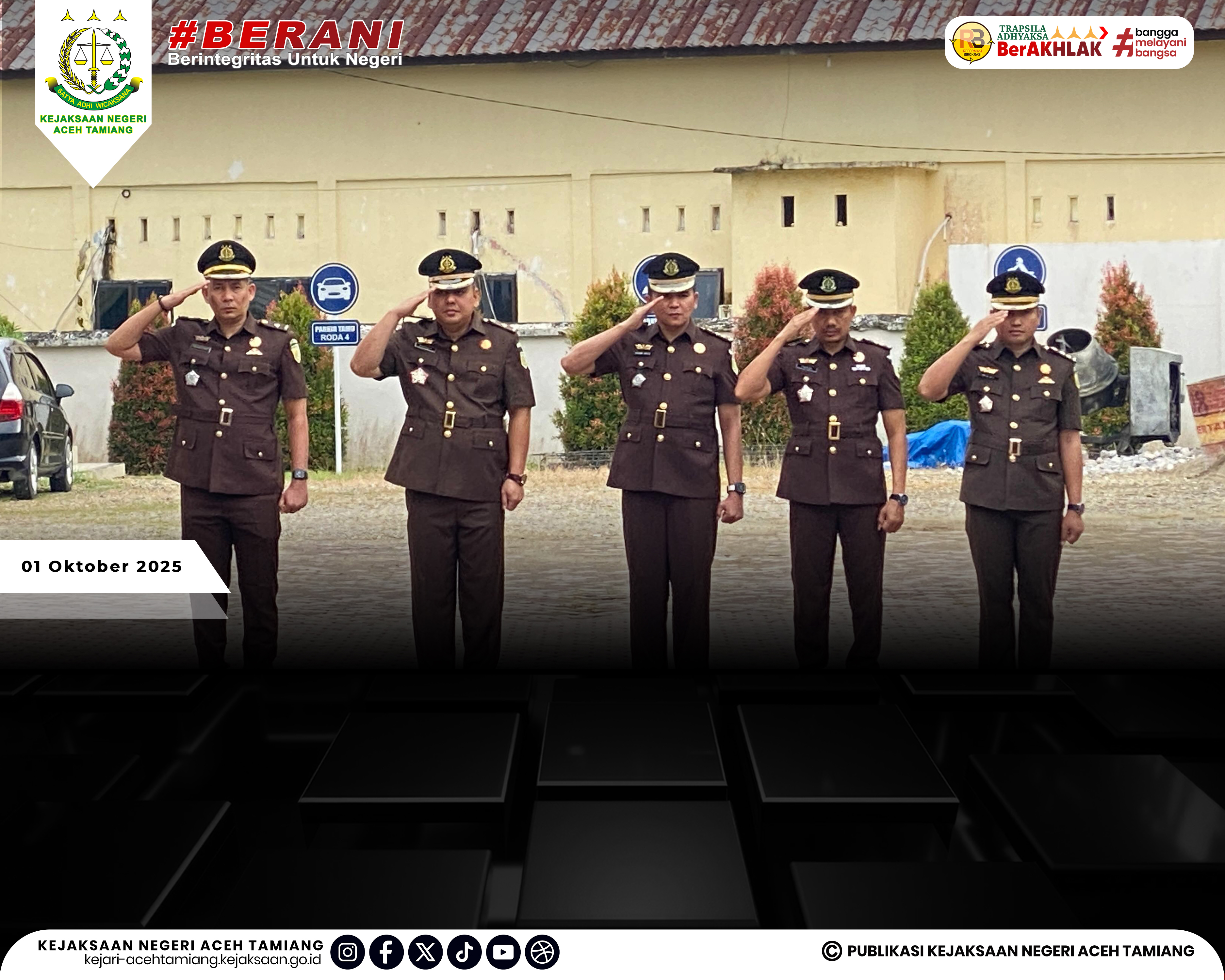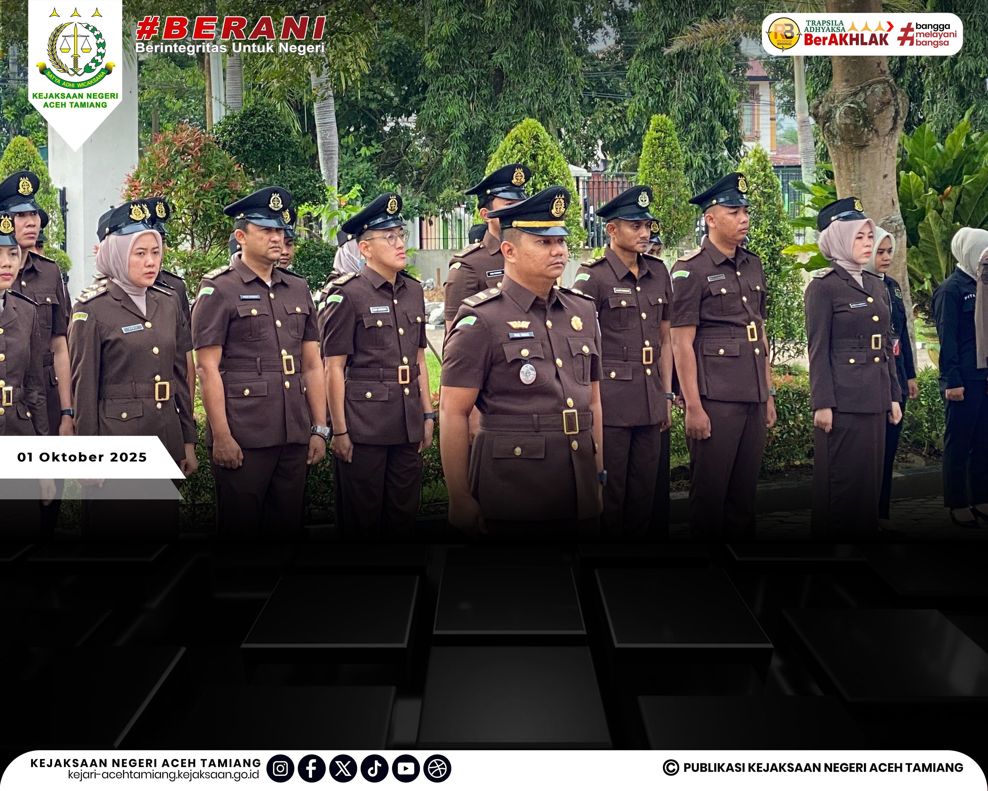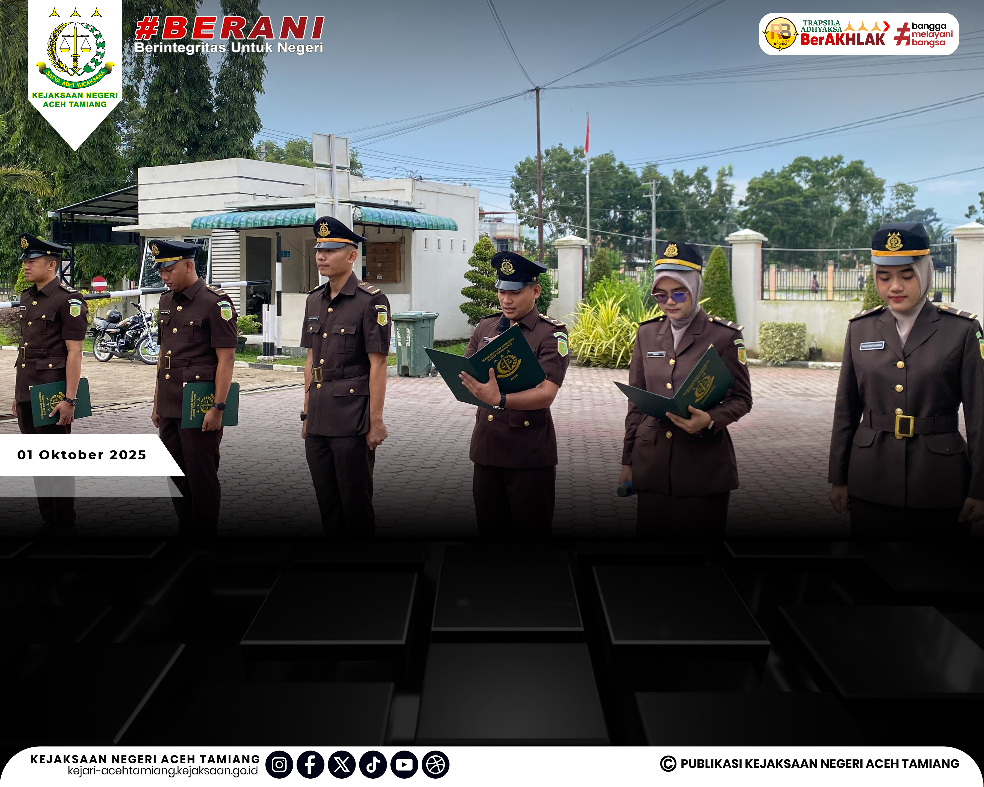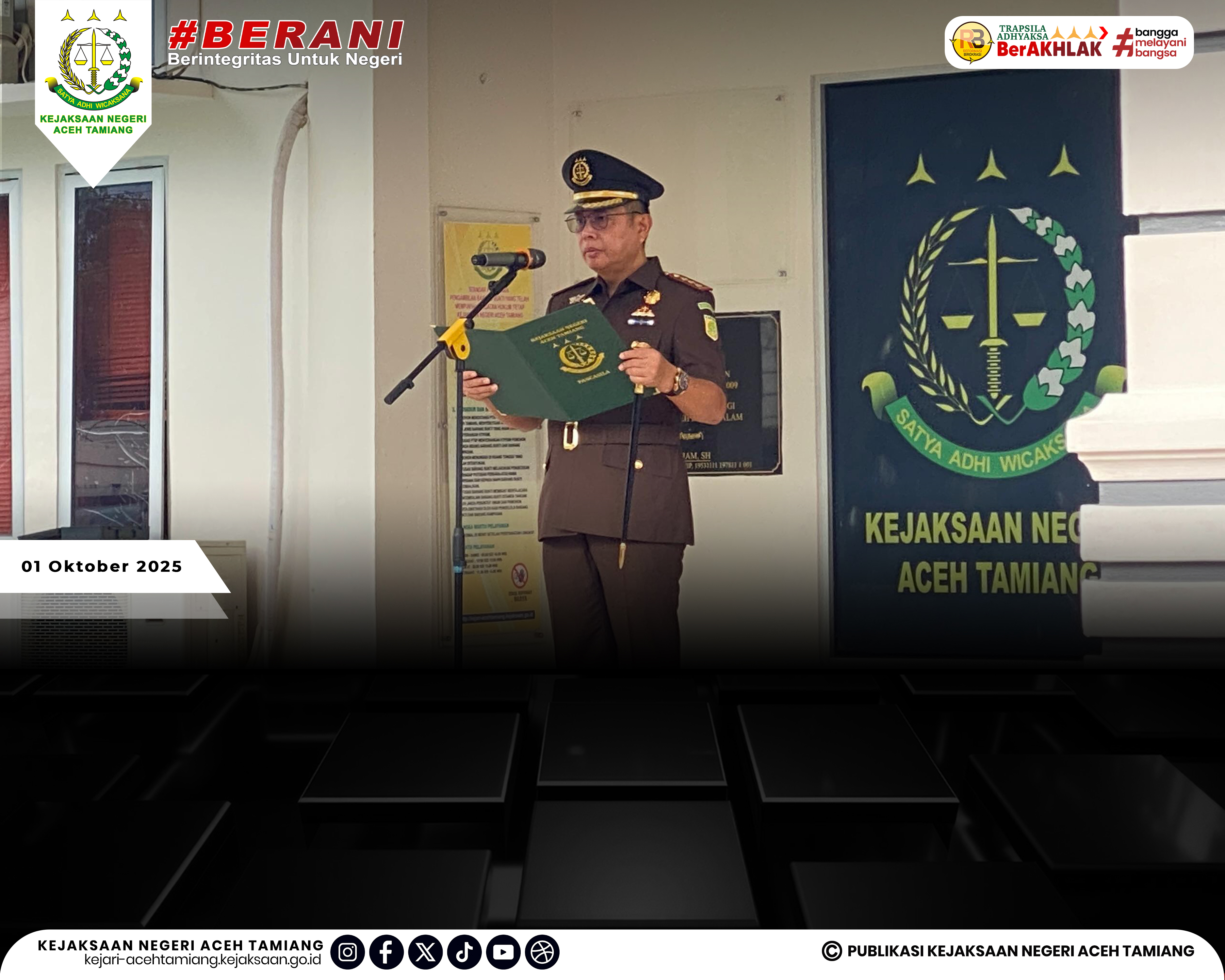 [Rabu, 01 Oktober 2025] Kepala Kejaksaan Negeri Aceh Tamiang Bapak Dr. Yudhi Syufriadi, S.H., M.H. Pimpin Upacara Peringatan Hari Kesaktian Pancasila Tahun 2025 "Pancasila Perekat Bangsa Menuju Indonesia Raya" yang Dihadiri oleh Seluruh Jajaran Kasi, Kasubag, Kasubsi, Kaur, Para Pegawai dan Tenaga Outsourching di Halaman Kantor Kejaksaan Negeri Aceh Tamiang.
