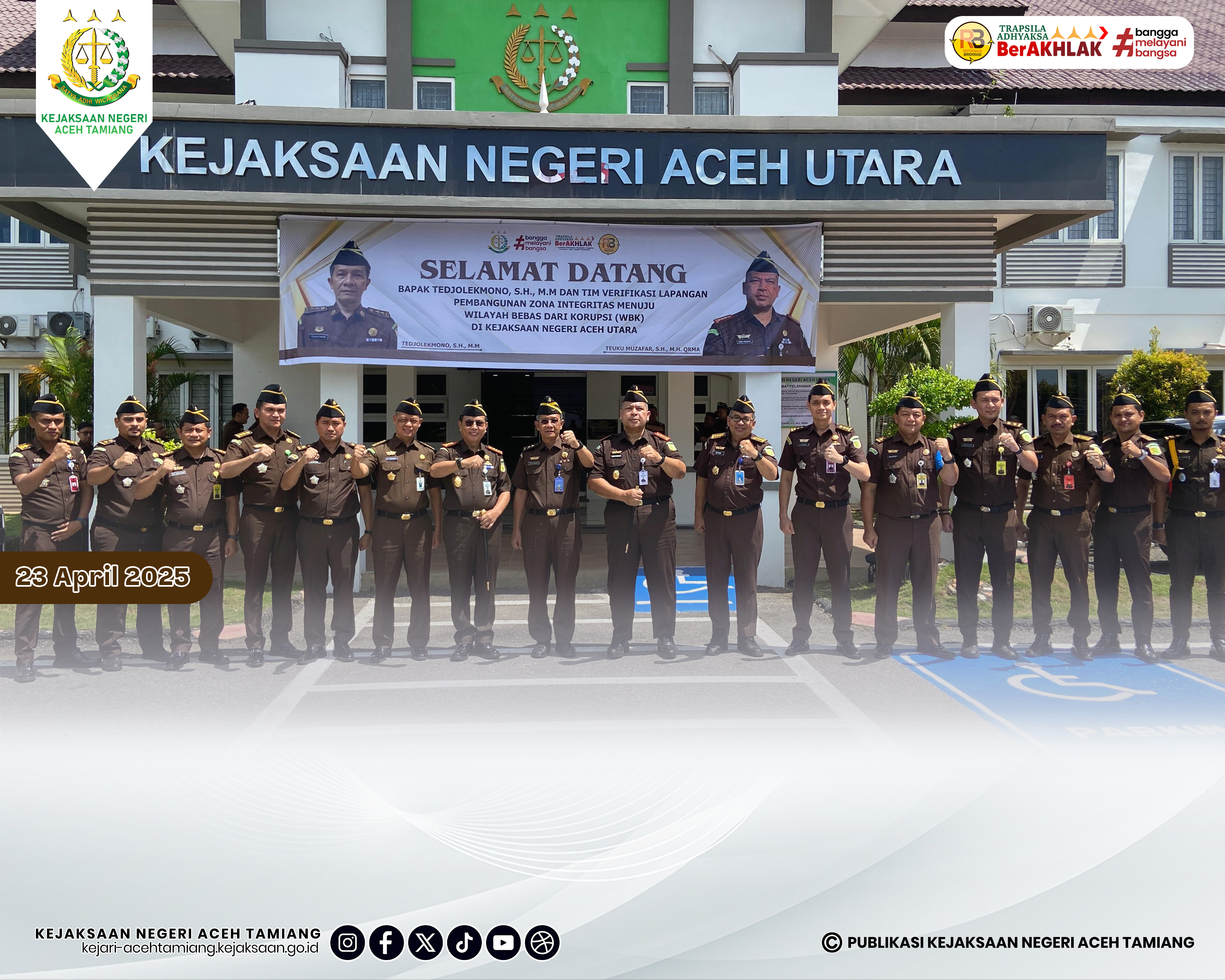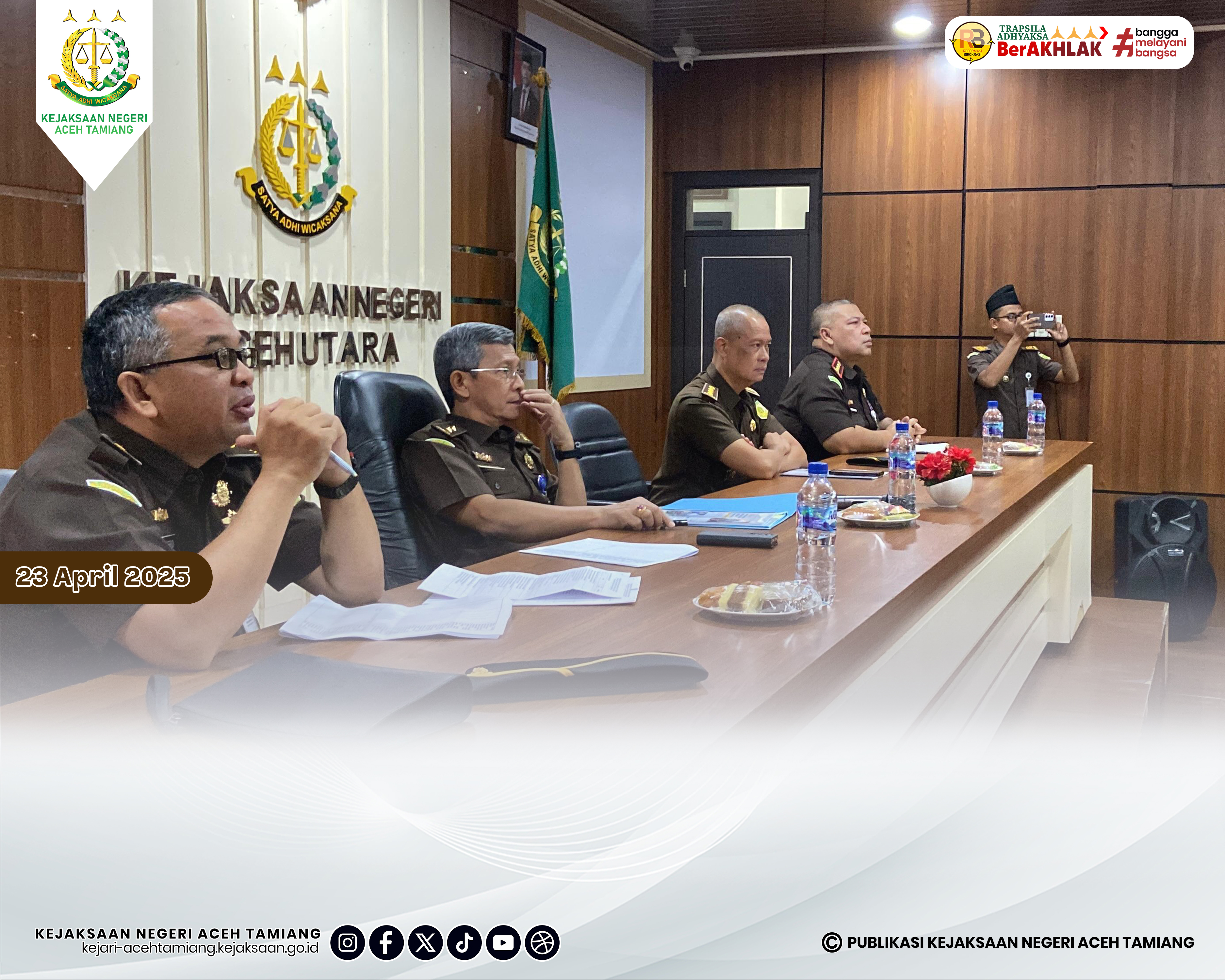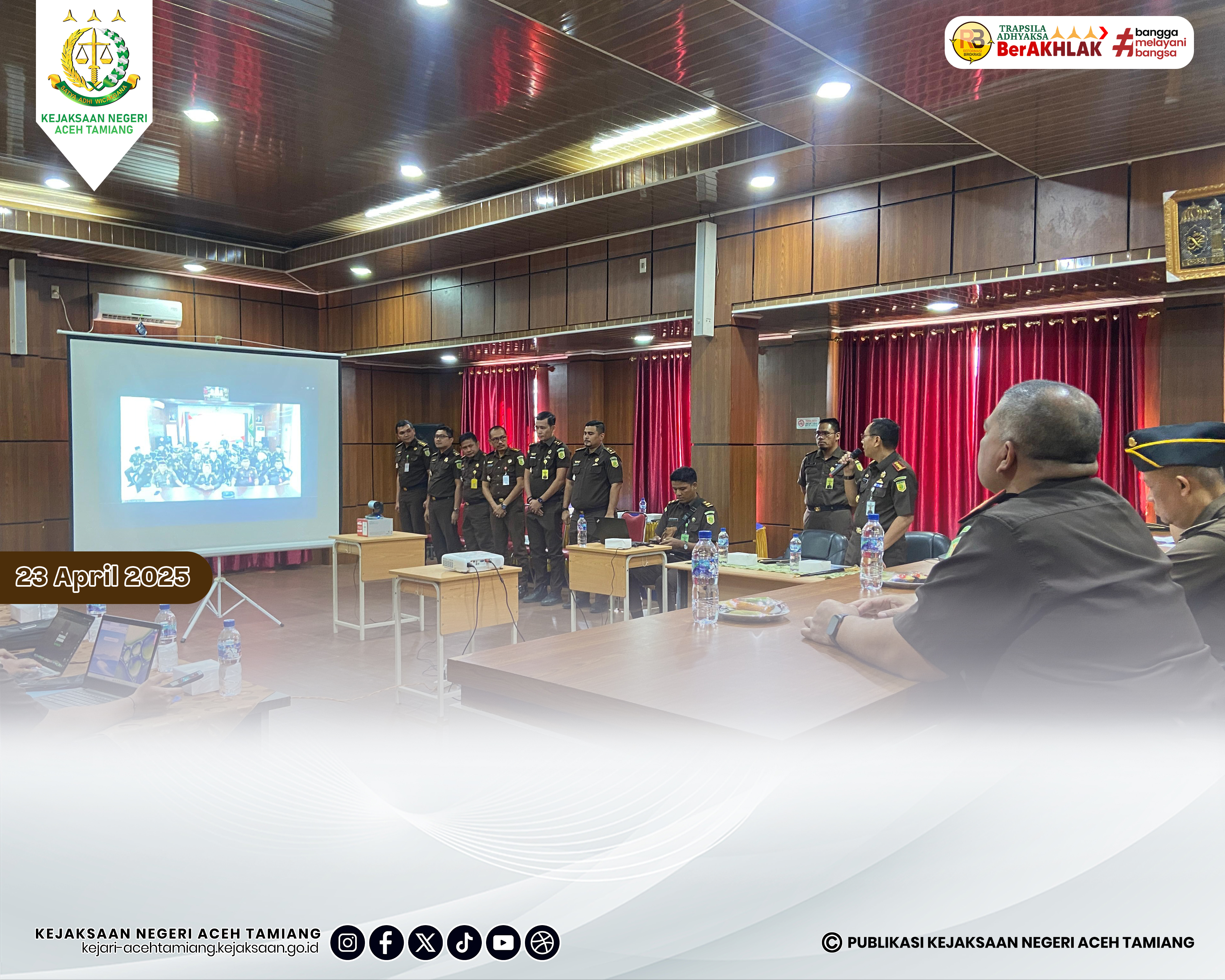 [Rabu, 23 April 2025] Kepala Kejaksaan Negeri Aceh Tamiang Bapak Dr. Yudhi Syufriadi, S.H., M.H. Mempresentasikan Paparan Zona Integritas Menuju Wilayah Bebas dari Korupsi (WBK) dihadapan Tim Penilai WBK dari Kejaksaan Agung RI di Kejaksaan Negeri Aceh Utara.