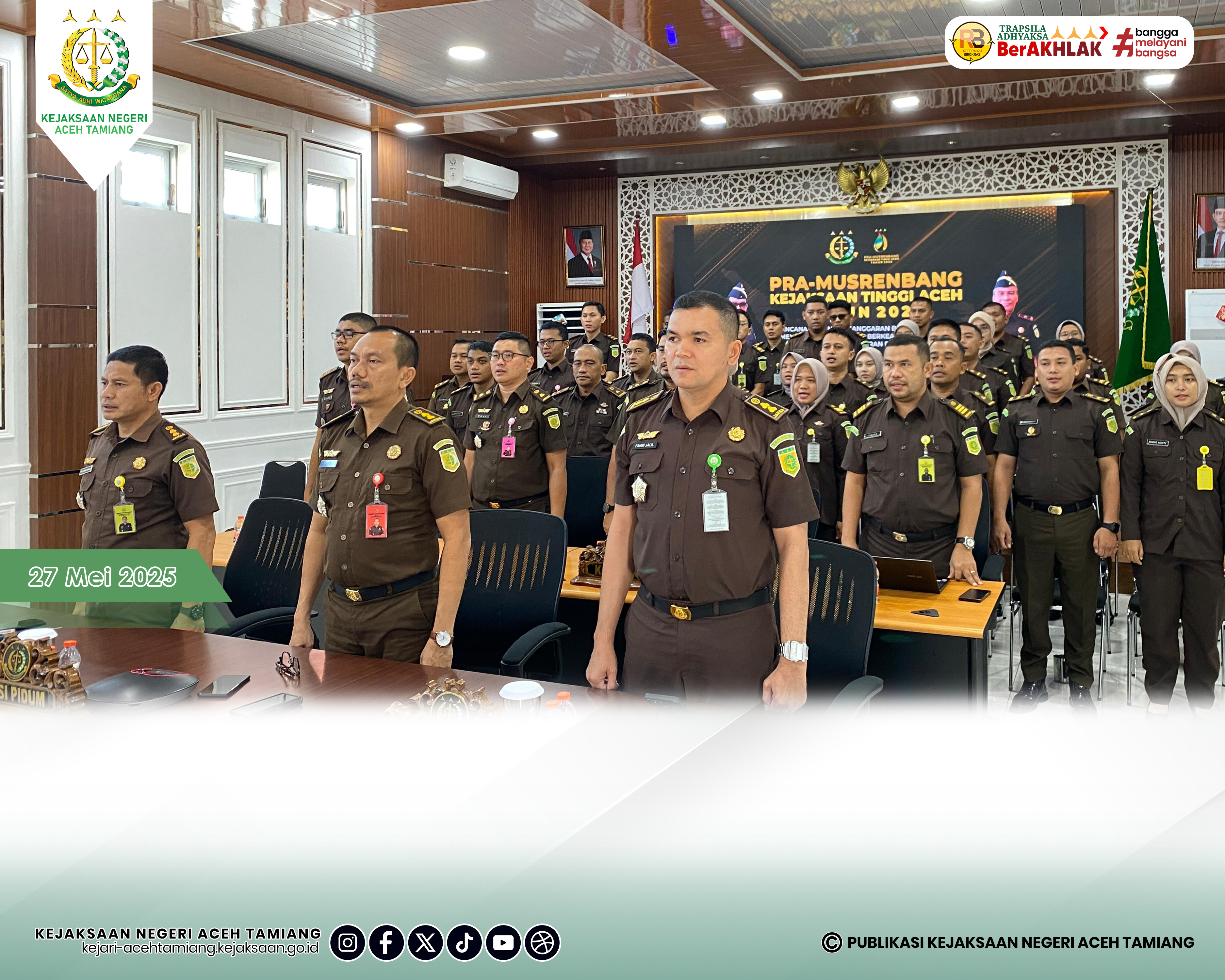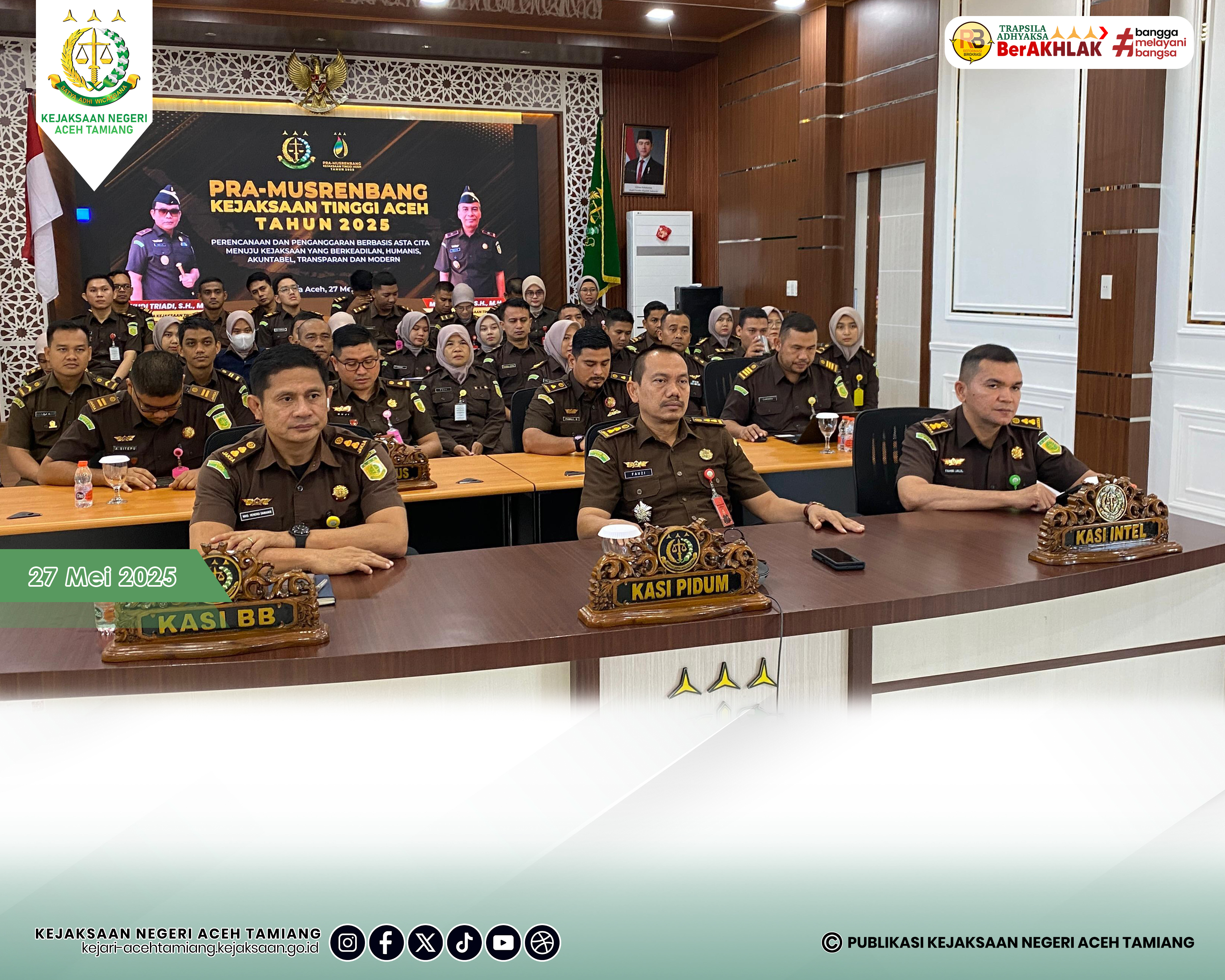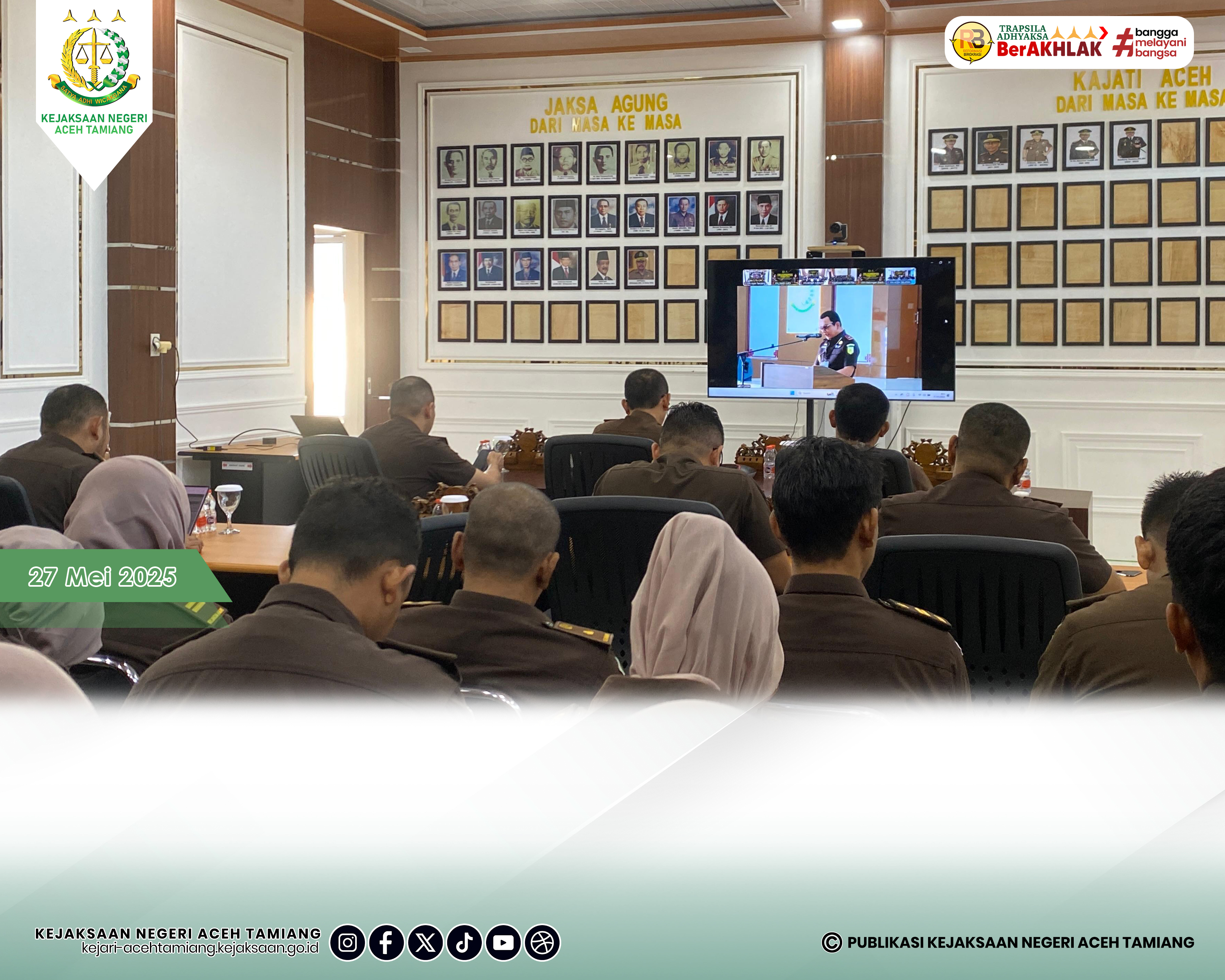 [Selasa, 27 Mei 2025] Jajaran Kejaksaan Negeri Aceh Tamiang Mengikuti Zoom Meeting Pra-Musrenbang Kejaksaan Tinggi Aceh Tahun 2025 "Perencanaan dan Penganggaran Berbasis Asta Cita Menuju Kejaksaan yang Berkeadilan, Humanis, Akuntabel, Transparan, dan Modern" di Aula Kantor Kejaksaan Negeri Aceh Tamiang.