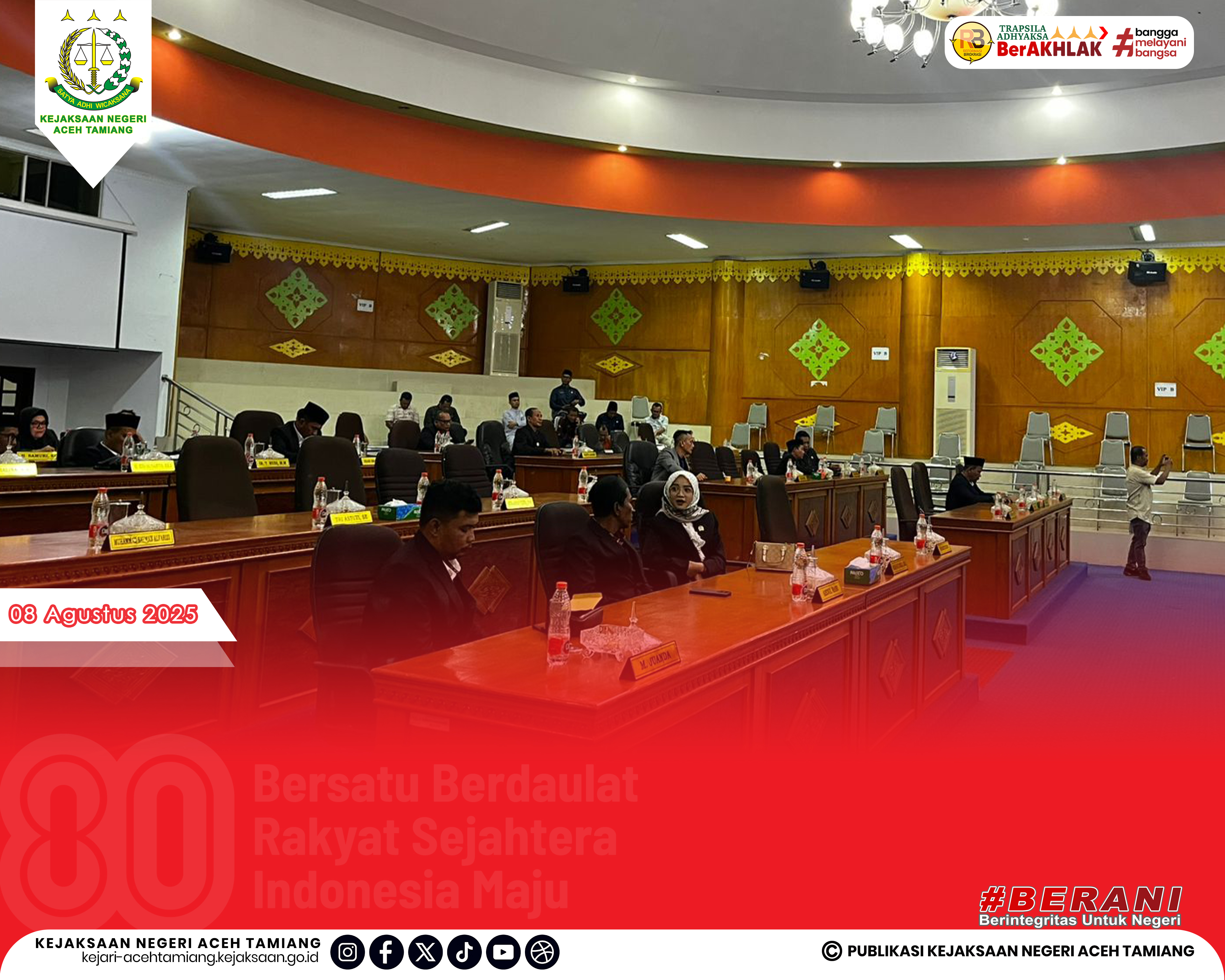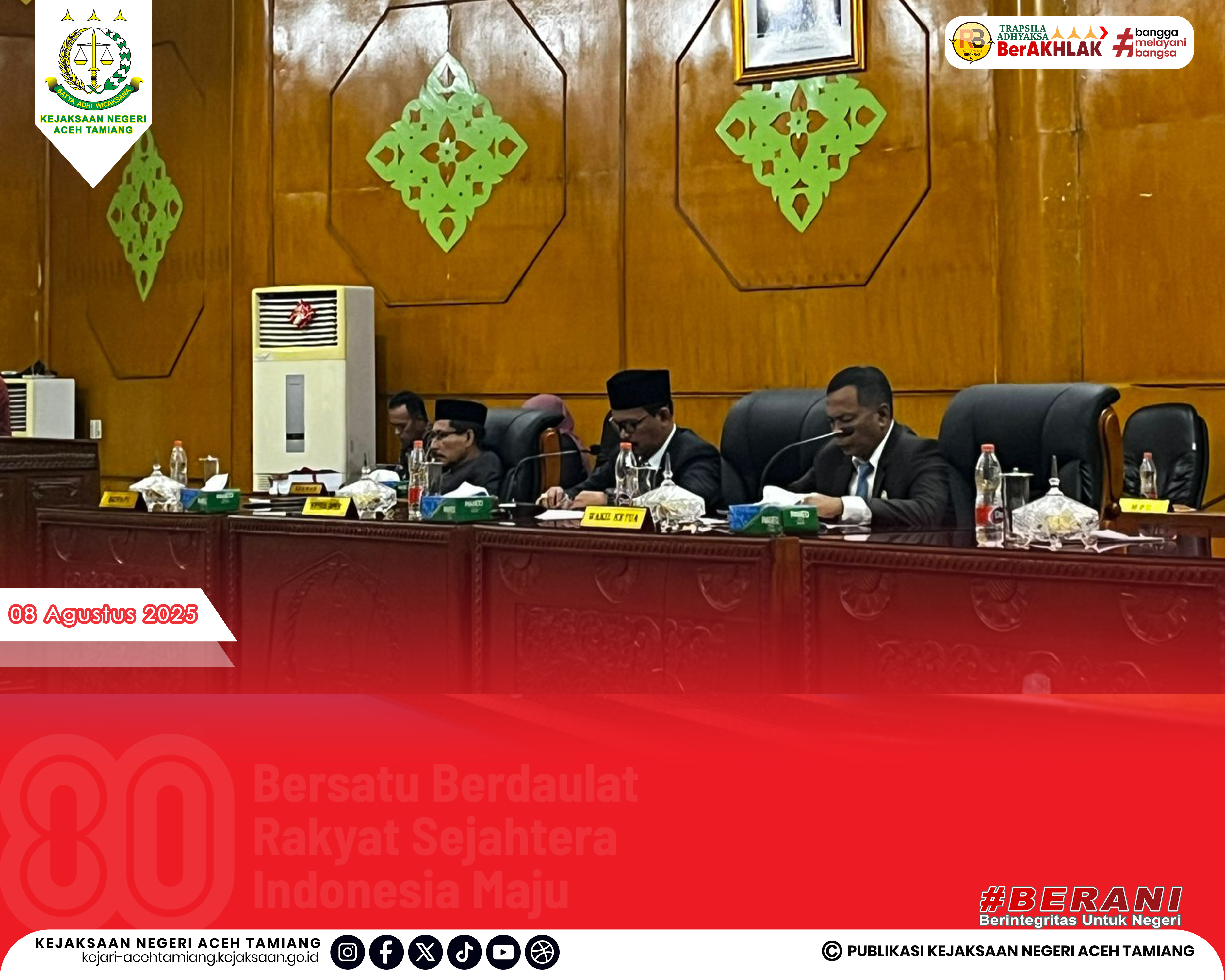 [Jumat, 08 Agustus 2025] Kepala Kejaksaan Negeri Aceh Tamiang Diwakili Oleh Kepala Seksi Perdata Dan Tata Usaha Negara Bapak Rikhy Khadafy, S.H., M.H Menghadiri Rapat Paripurna Ke-1 Dengan Agenda Penyampaian Rancangan KUA Dan PPAS Kabupaten Aceh Tamiang Tahun Anggaran 2026 Di Ruang Sidang Utama DPRK Kabupaten Aceh Tamiang.