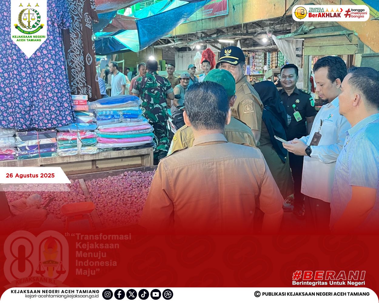 [Selasa, 26 Agustus 2025] Kepala Sub Seksi A Intelijen Kejaksaan Negeri Aceh Tamiang, Muhammad Ridho, S.H., M.H. Bersama Bupati Aceh Tamiang, Dandim 0117 Aceh Tamiang, Kapolres Aceh Tamiang dan Para Kadis Terkait Laksanakan Sidak Harga Pasar di Pasar Pagi Kota Kuala Simpang dalam Rangka Pengendalian Inflasi di Kabupaten Aceh Tamiang.