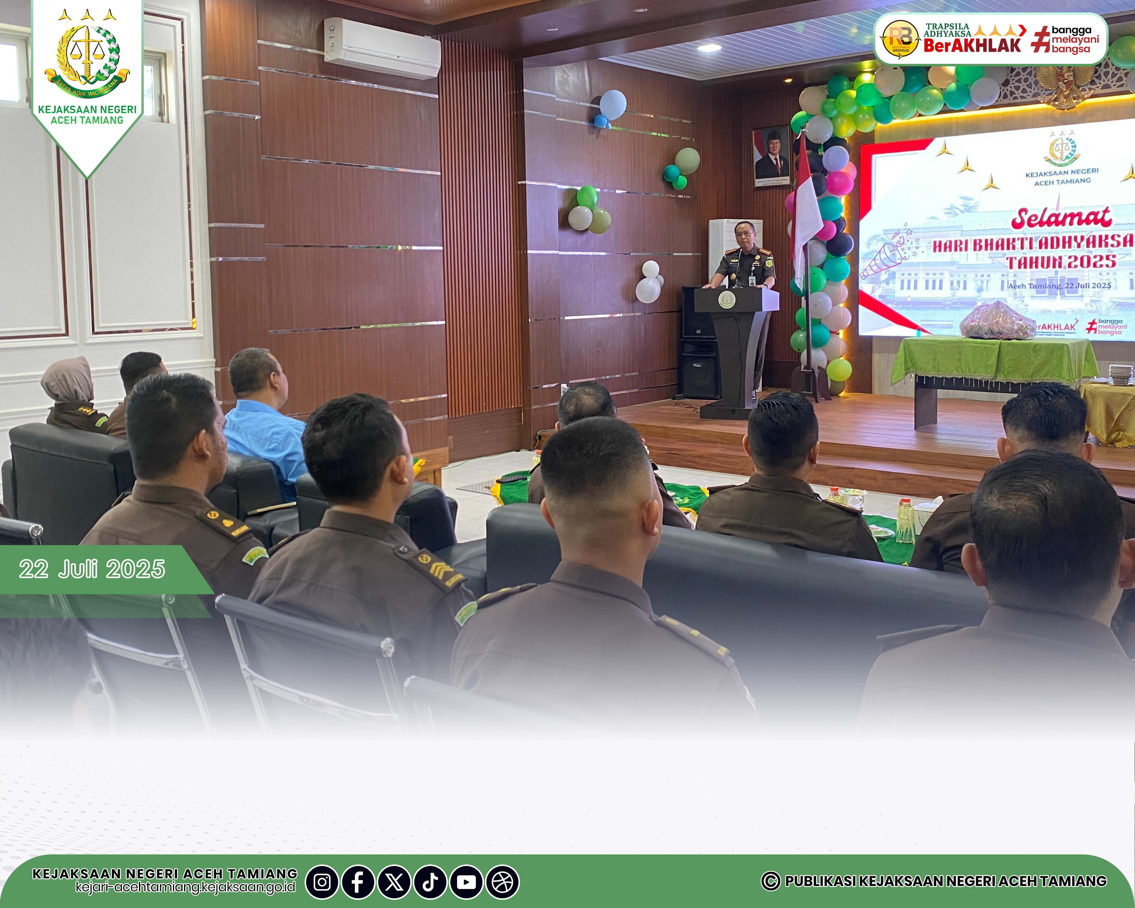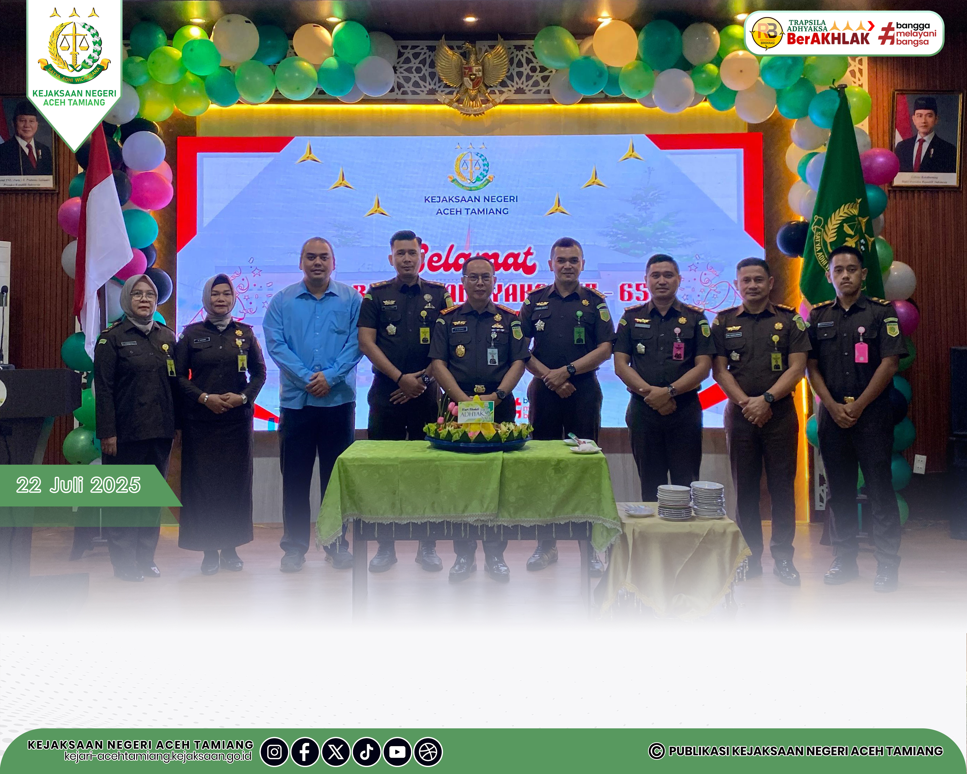 [Selasa, 22 Juli 2025] Bertempat di Aula Kantor Kejaksaan Negeri Aceh Tamiang, telah dilaksanakan kegiatan Syukuran Hari Bhakti Adhyaksa Ke-65 Tahun 2025, yang berlangsung dengan penuh khidmat, kekeluargaan, dan semangat kebersamaan.