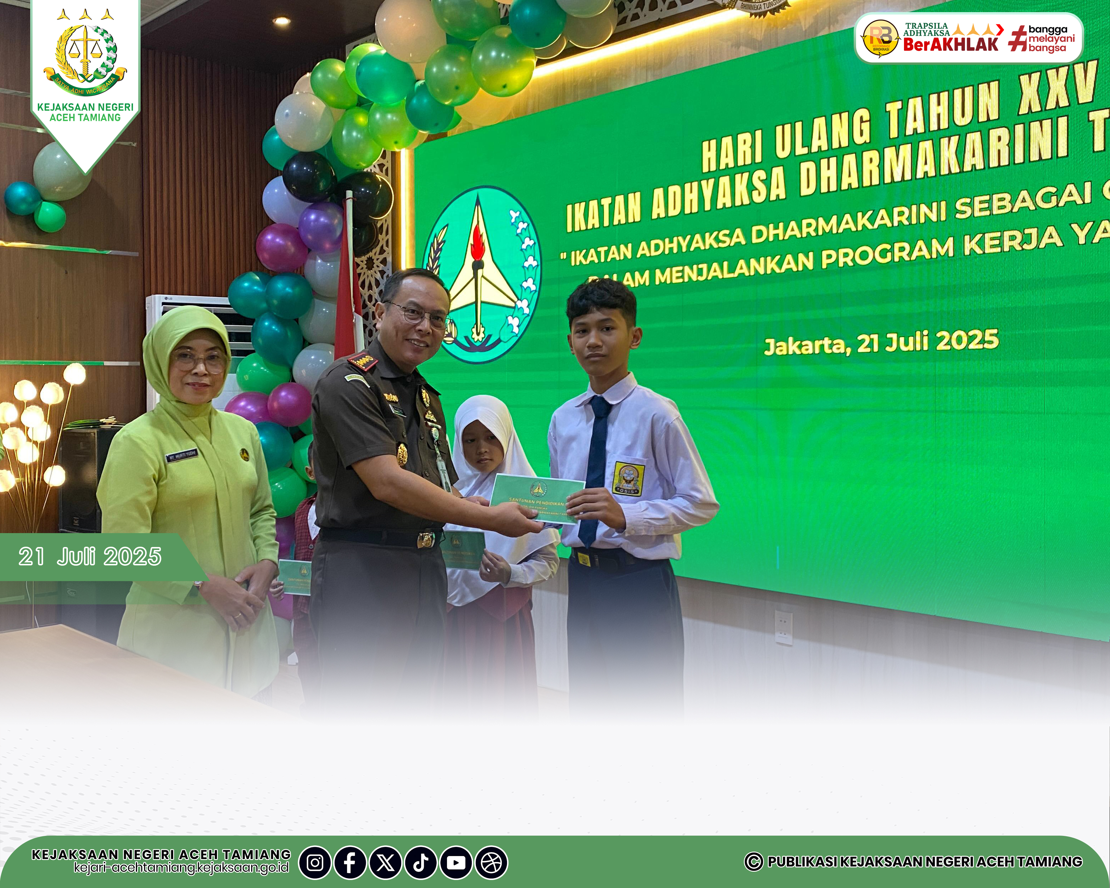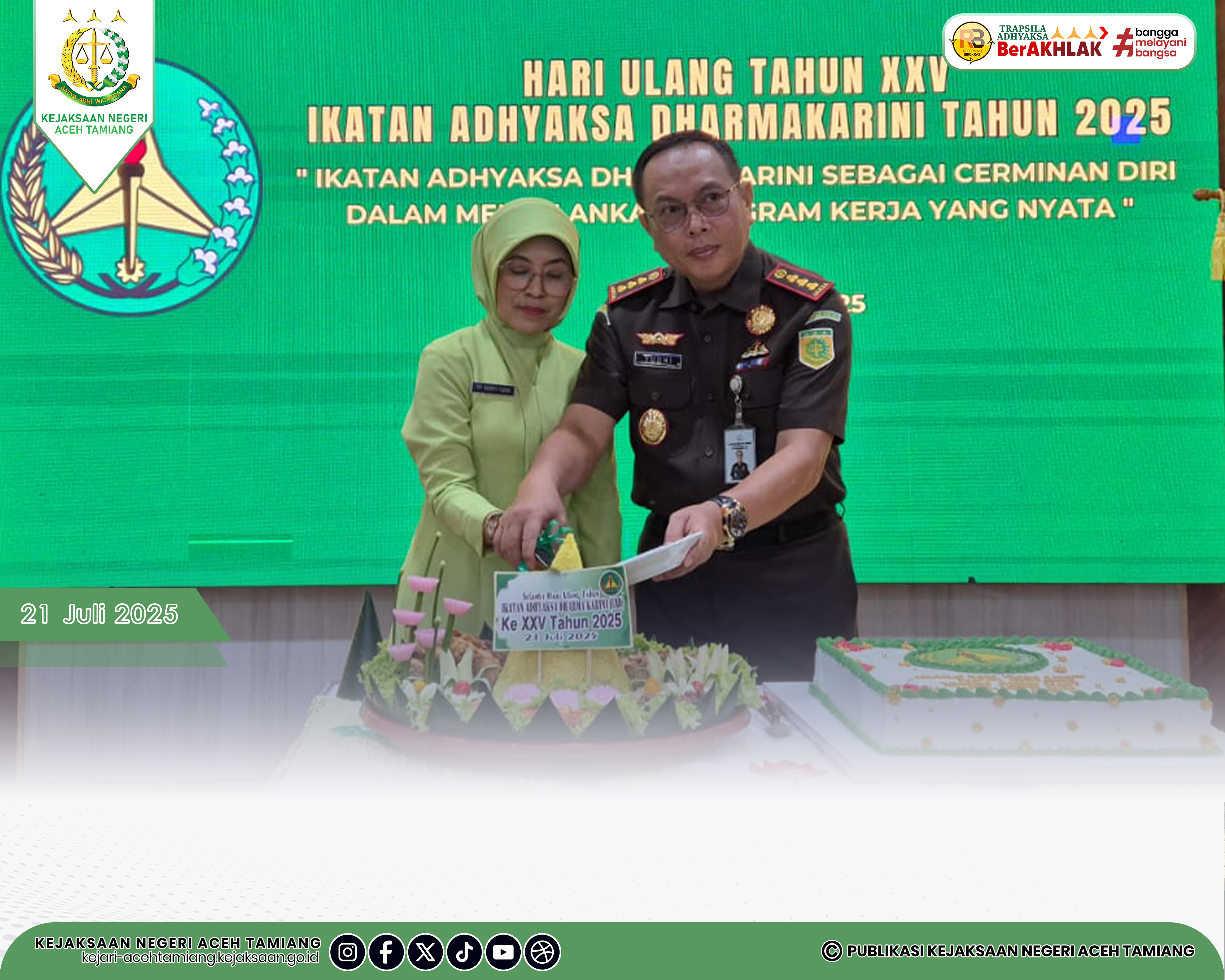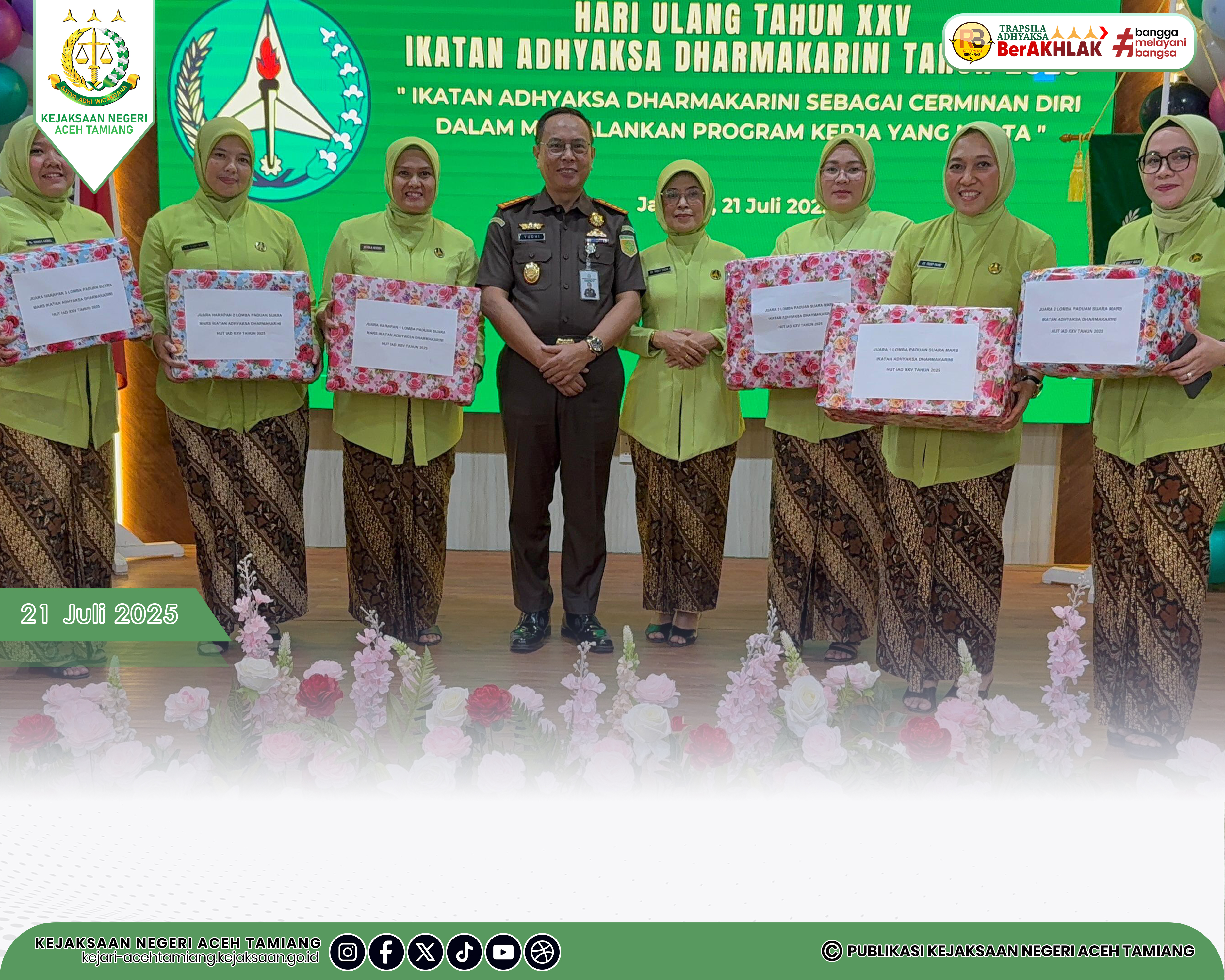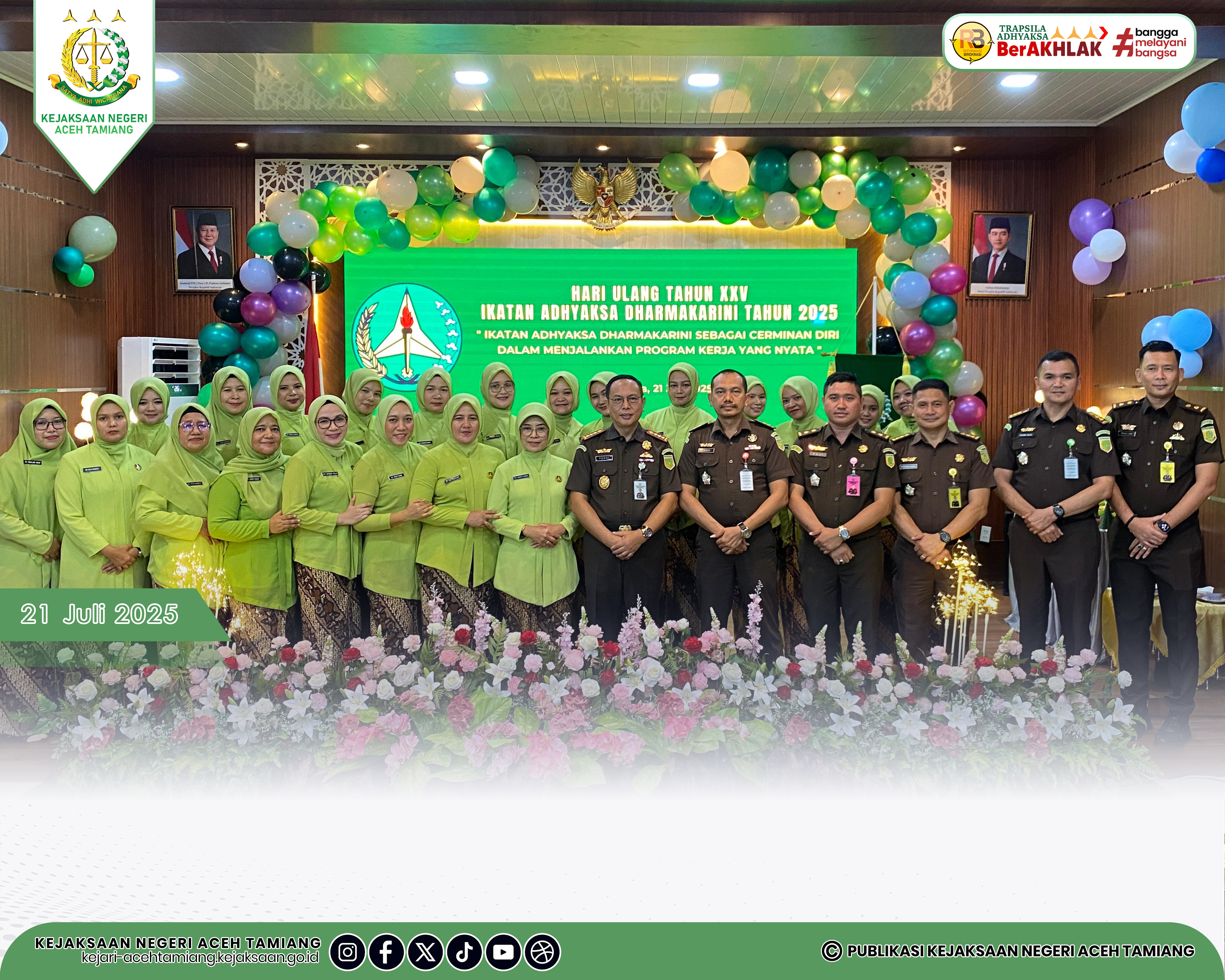 [Senin, 21 Juli 2025] Bertempat di Aula Kantor Kejaksaan Negeri Aceh Tamiang, telah dilaksanakan kegiatan Syukuran Hari Ulang Tahun ke-25 (XXV) Ikatan Adhyaksa Dharmakarini (IAD) Tahun 2025, yang berlangsung dengan penuh khidmat, kekeluargaan, dan semangat kebersamaan.