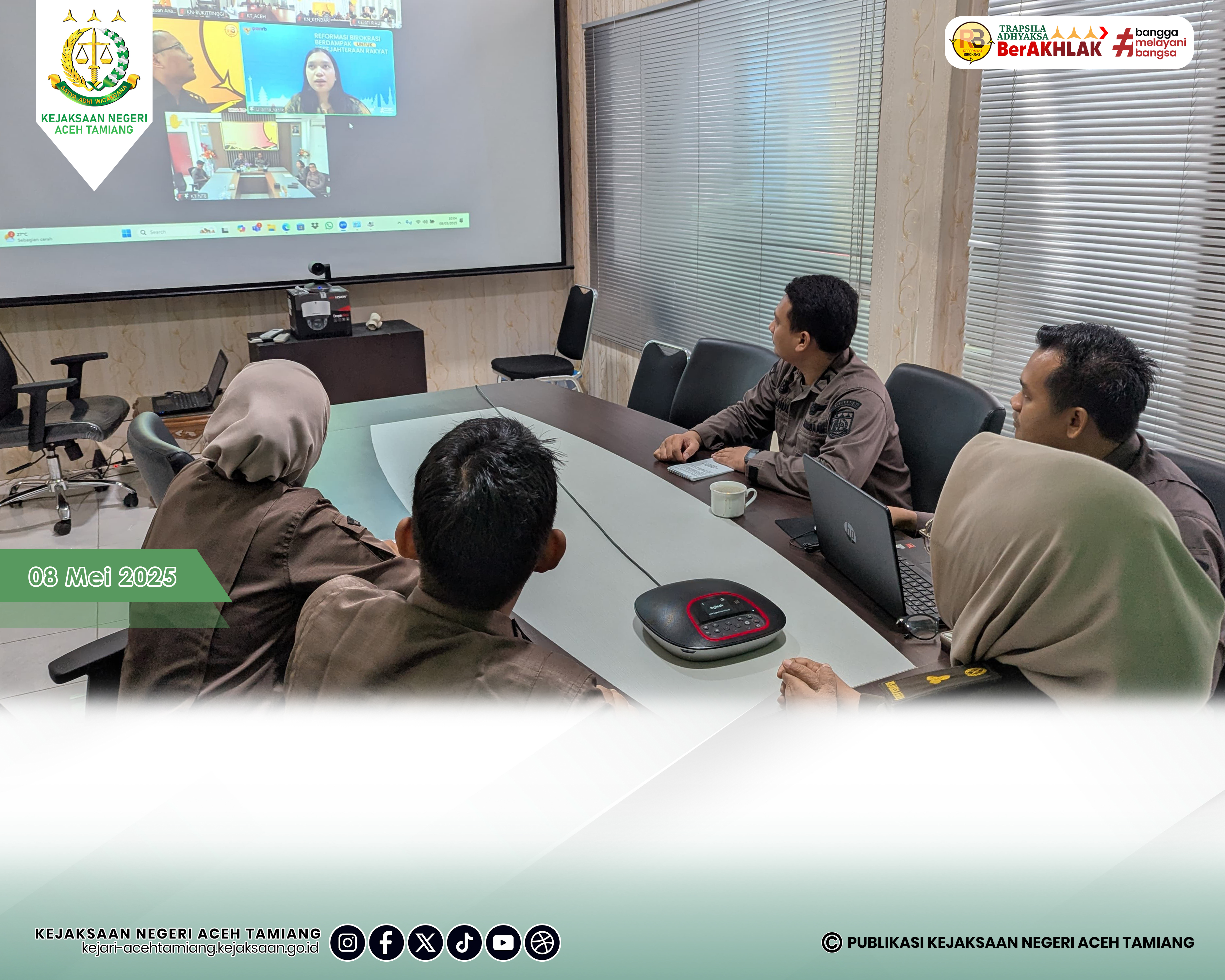 [Kamis, 08 Mei 2025] Jajaran Pembinaan Kejaksaan Negeri Aceh Tamiang Mengikuti Zoom Meeting Halo RB Edisi Mei 2025 dengan Tema "Kompetisi Inovasi Pelayanan Publik" di Ruang Vicon Kejaksaan Negeri Aceh Tamiang.