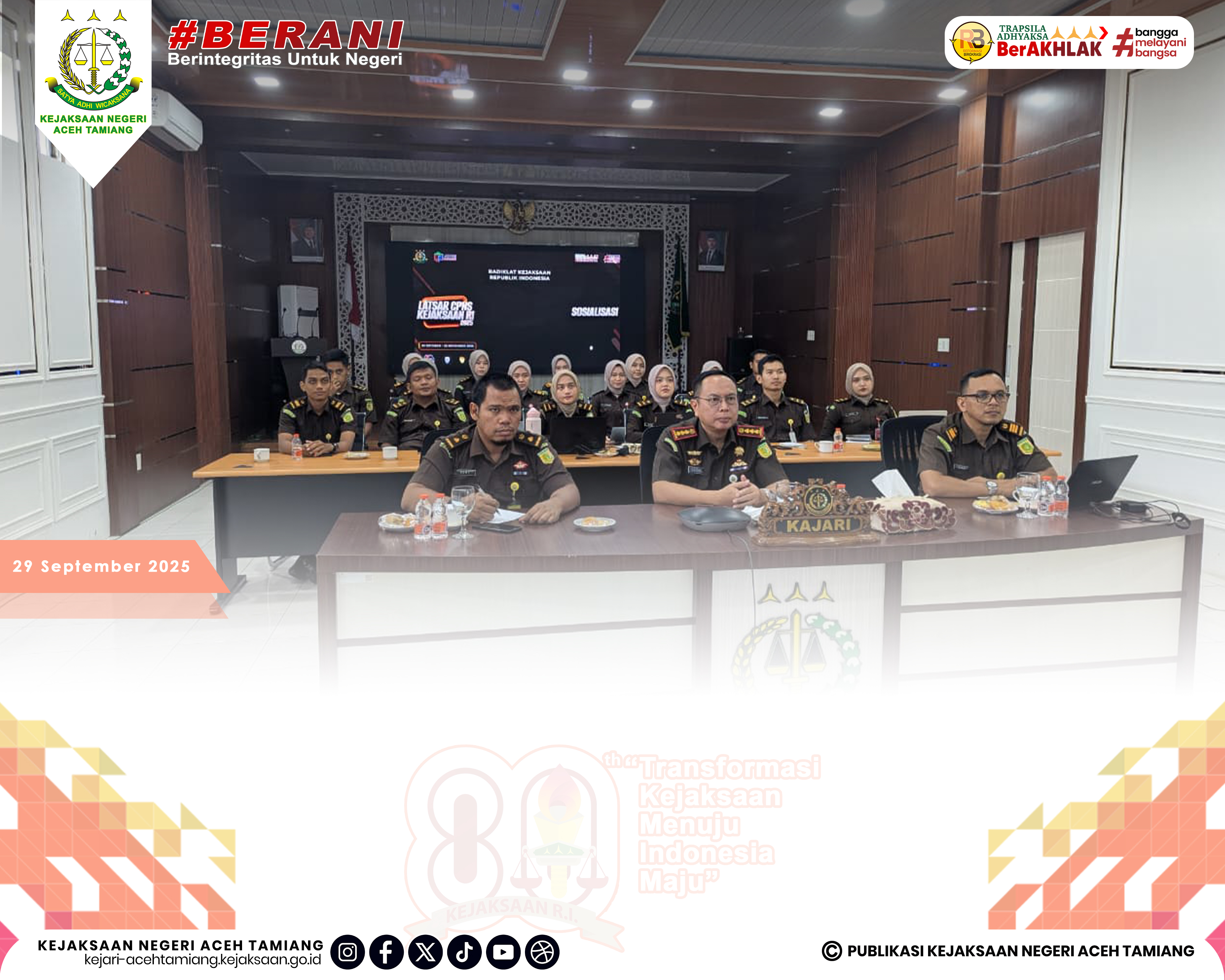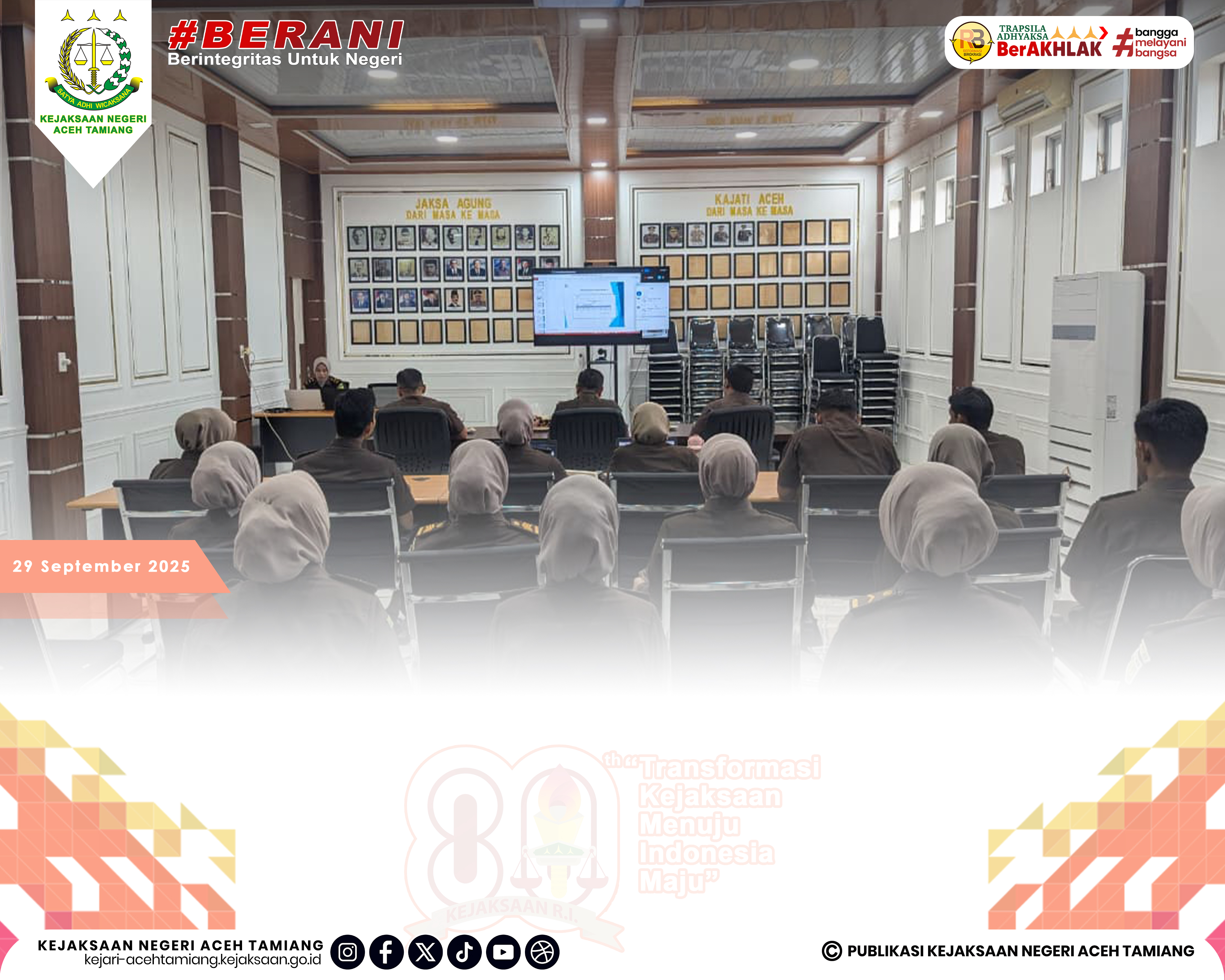 [Senin, 29 September 2025] Kepala Kejaksaan Negeri Aceh Tamiang Bapak Dr. Yudhi Syufriadi, S.H., M.H. Beserta Jajaran Pembinaan dan Para CPNS Tahun 2025 Mengikuti Zoom Meeting Persiapan Pelaksanaan Pelatihan Dasar (LATSAR) CPNS Tahun 2025 di Aula Kantor Kejaksaan Negeri Aceh Tamiang.