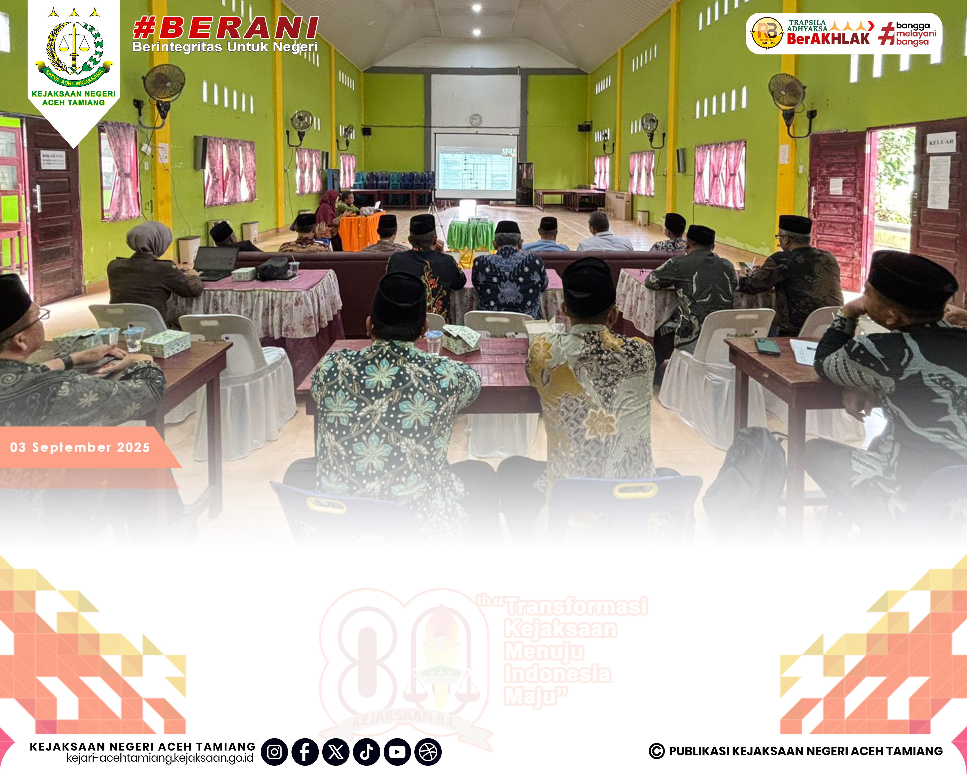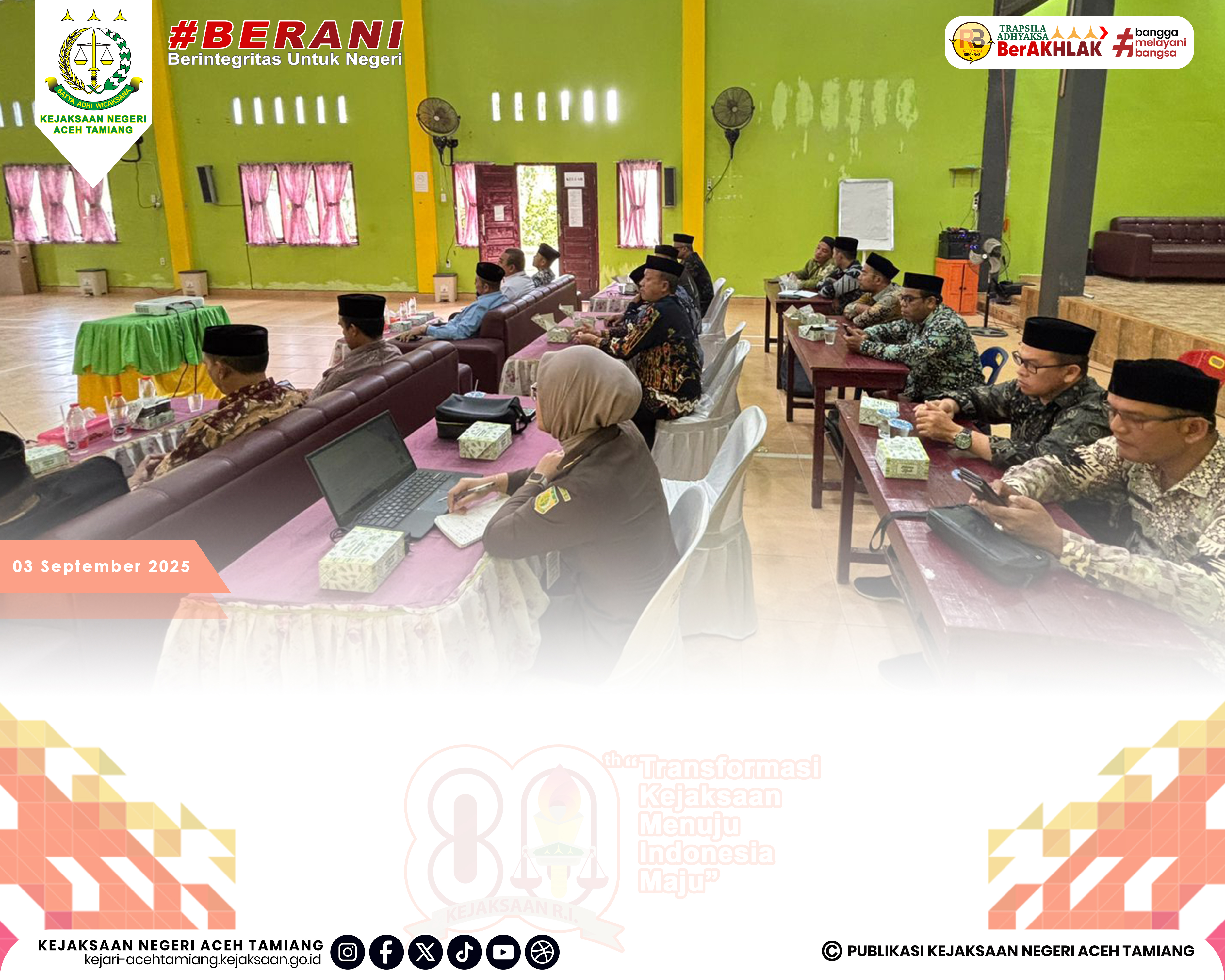 [Rabu, 03 September 2025] Kepala Seksi Perdata dan Tata Usaha Negara Kejaksaan Negeri Aceh Tamiang Bapak Rikhy Khadafy, S.H., M.H. Beserta Jajaran Bidang Datun dan Kementrian Agama Kabupaten Aceh Tamiang Mengikuti Zoom Meeting Rapat Koordinasi Percepatan Sertifikasi Tanah Wakah Se-Aceh di Aula Al-Ikhwan Kantor Kementrian Agama Aceh Tamiang.