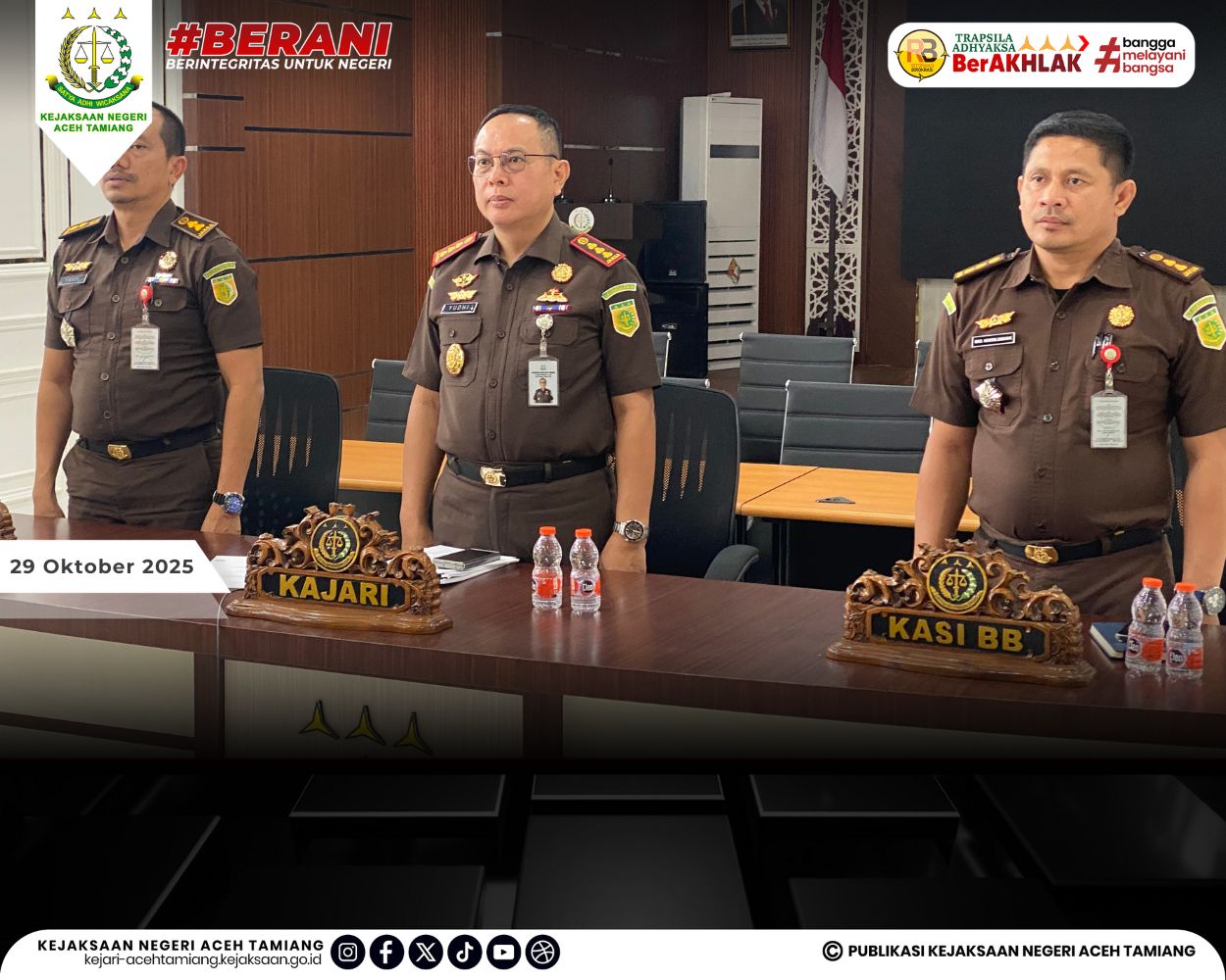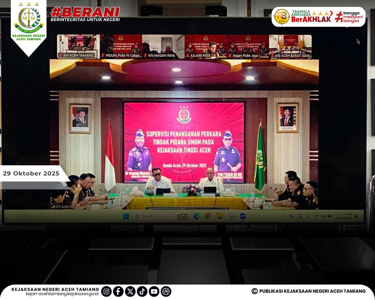 [Rabu, 29 Oktober 2025] Kepala Kejaksaan Negeri Aceh Tamiang Bapak Dr. Yudhi Syufriadi, S.H., M.H. Didampingi Kasi Pidum Bapak Fauzi, S.H. dan Kasi PAPBB Bapak Mhd. Hendra Damanik, S.H., M.H. Mengikuti Zoom Meeting Supervisi Penanganan Perkara Tindak Pidana Umum Pada Kejaksaan Tinggi Aceh di Aula Kantor Kejaksaan Negeri Aceh Tamiang.